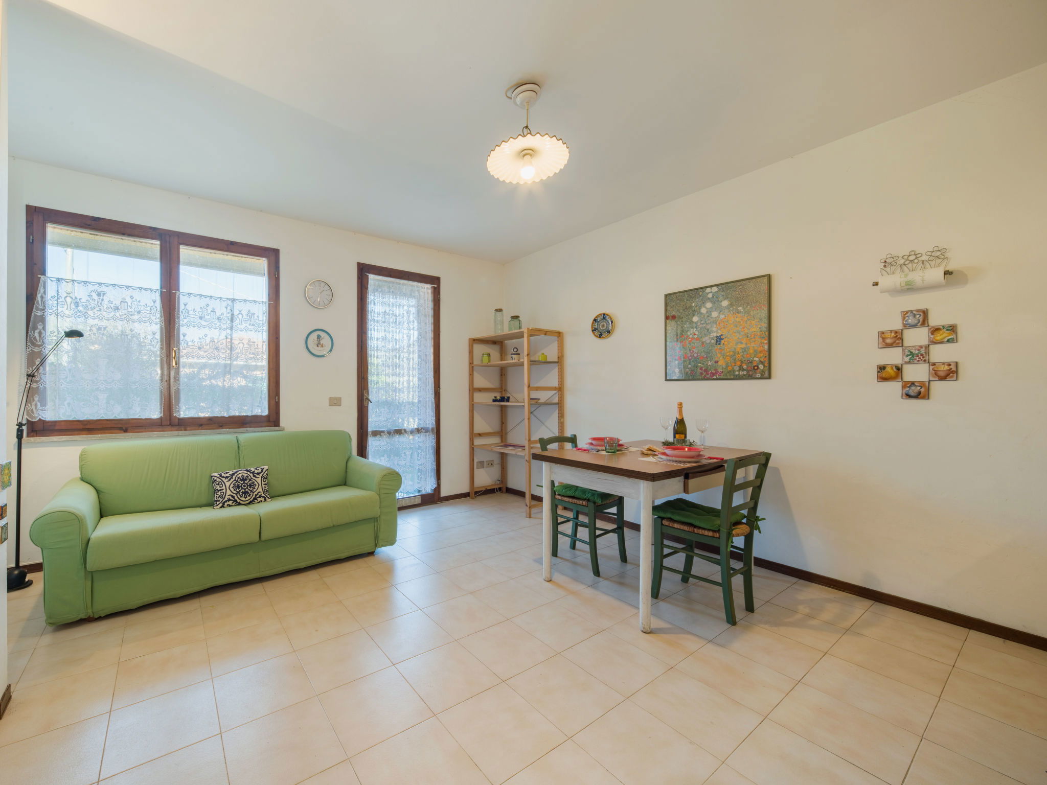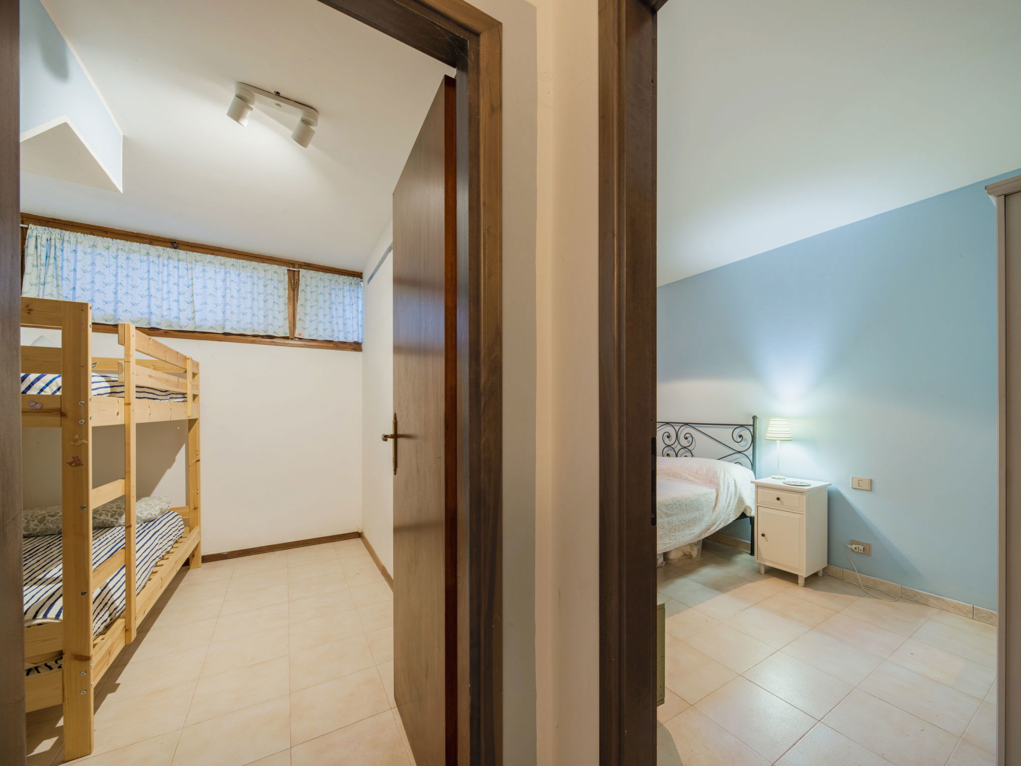 Appartement de 3 pièces 60 m2 sur 2 niveaux. Logement idéal pour 2 adultes + 2 enfants. Aménagement agréable et plaisant: cuisine/séjour (four, Poêle à gaz, 4 feux, grille-pain, cafetière électrique) avec table pour les repas, TV et écran plat. Sortie sur le jardin. Douche/bidet/WC. Pas de chauffage. À l'étage inférieur: 1 chambre double. 1 chambre, 1 lits superposés. WC séparé. Chauffage au gaz (en sus). Petit jardin 25 m2. Meubles de terrasse, chaises longues (2). A disposition: lave-linge, fer à repasser, chaise haute pour enfant, lit bébé jusqu'à 2 ans, sèche-cheveux. Internet (Connexion WIFI). Place de parking (cloturée, 1 Voiture). Veuillez noter: adapté(e) aux familles. Logement non-fumeur. Maximum 1 animal/ chien autorisé. Détecteur de fumée, extincteur. IT011021C23NTS972P