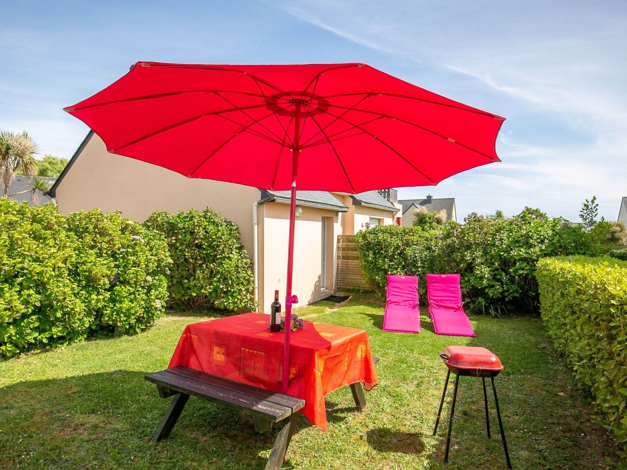Maison à 2 apts accueillante "Chez Cathy". Dans la localité, à 700 m du centre de Plougonvelin, à 25 km du centre de Brest, à 1 km de la mer, à 2 km de la plage, dans une impasse. A usage privé: terrain 85 m2, jardin entretenu avec pelouse et plantes. Jardinet (60 m2), meubles de jardin, barbecue, place de parking sur le terrain. Magasins, supermarché 600 m, restaurant 1 km, boulangerie 600 m, arrêt de bus 350 m, gare ferroviaire "Brest" 2.3 km, plage de sable "Plage du Trez Hir" 2.3 km, piscine couverte 2.5 km. Terrain de golf (18 trous) 15 km, ecole de surf 6 km, ecole de voile 2.5 km, chemins de randonnées pédestres depuis la maison 1 km. Attractions à proximité: Fort Bertheaume, Iroise Aventure 2.3 km, St Renan 14 km, Pointe de Saint Mathieu 3.6 km, Le Conquet 6 km, Lanildut, Pays des Abers 20 km, Océanopolis Brest 35 km. Région de randonnées: GR34, sentier des douaniers 1 km. Le propriétaire habite dans une partie de maison indépendante.
