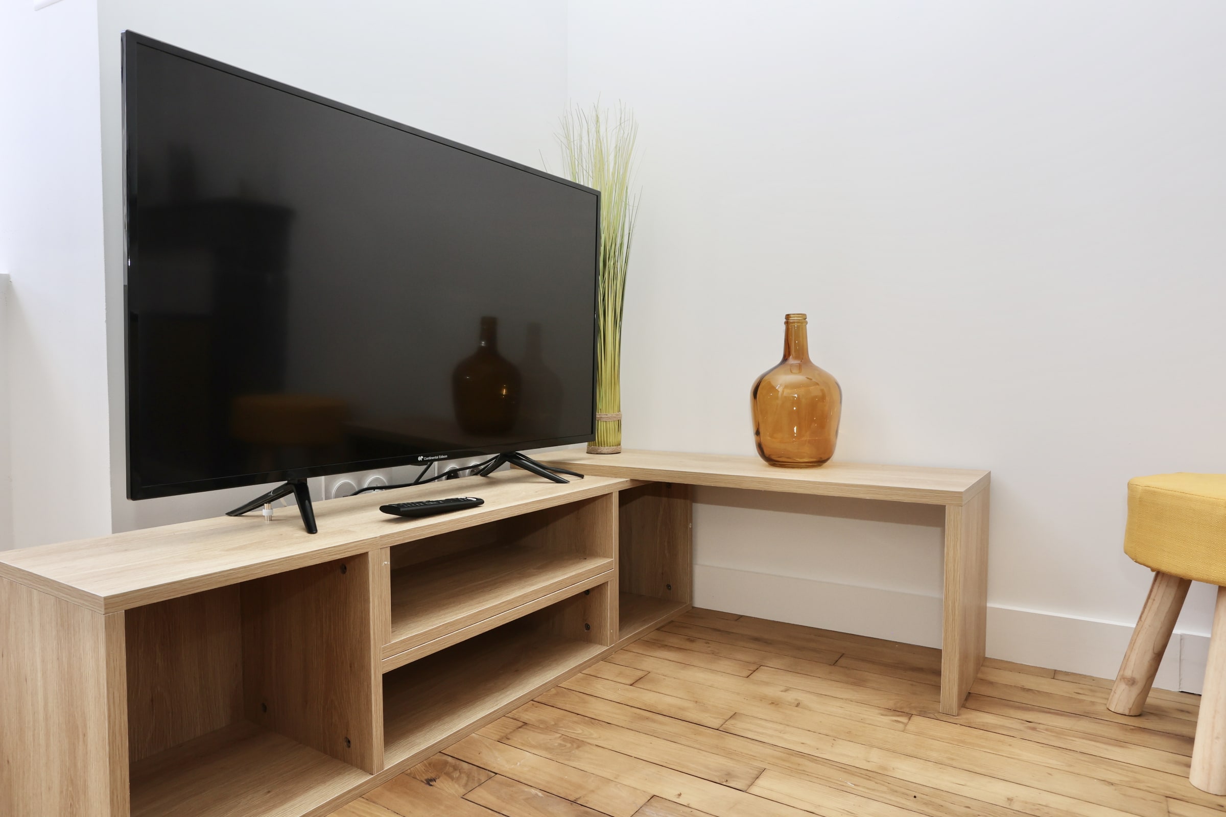 A 100m de la gare et à proximité du centre-ville (4min à pied), l’appartement dispose :