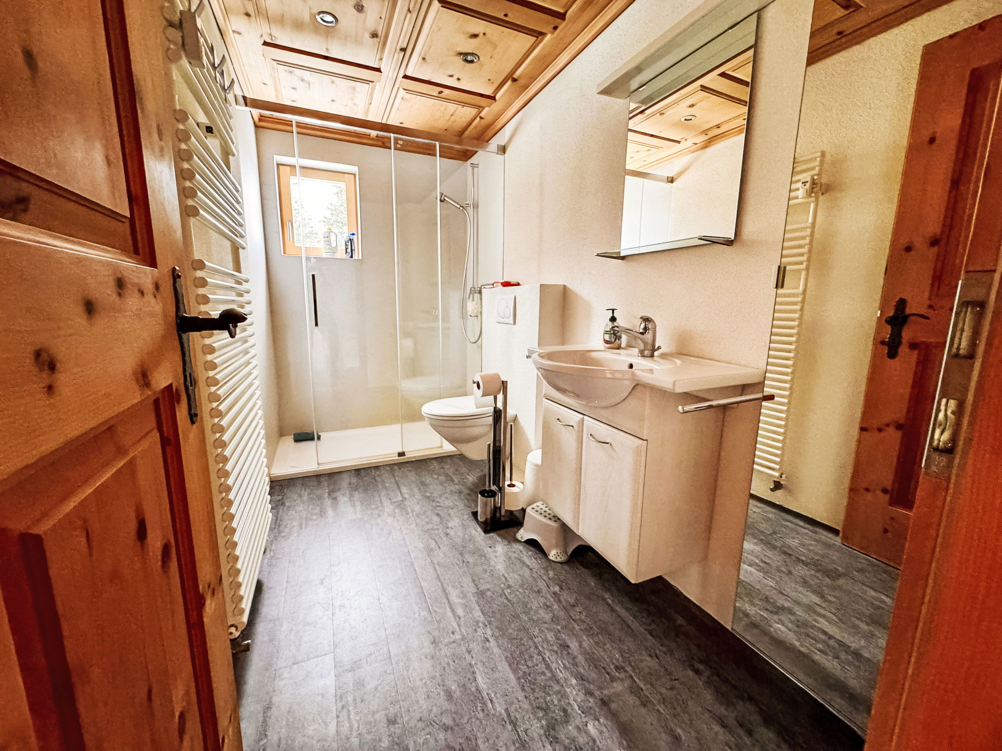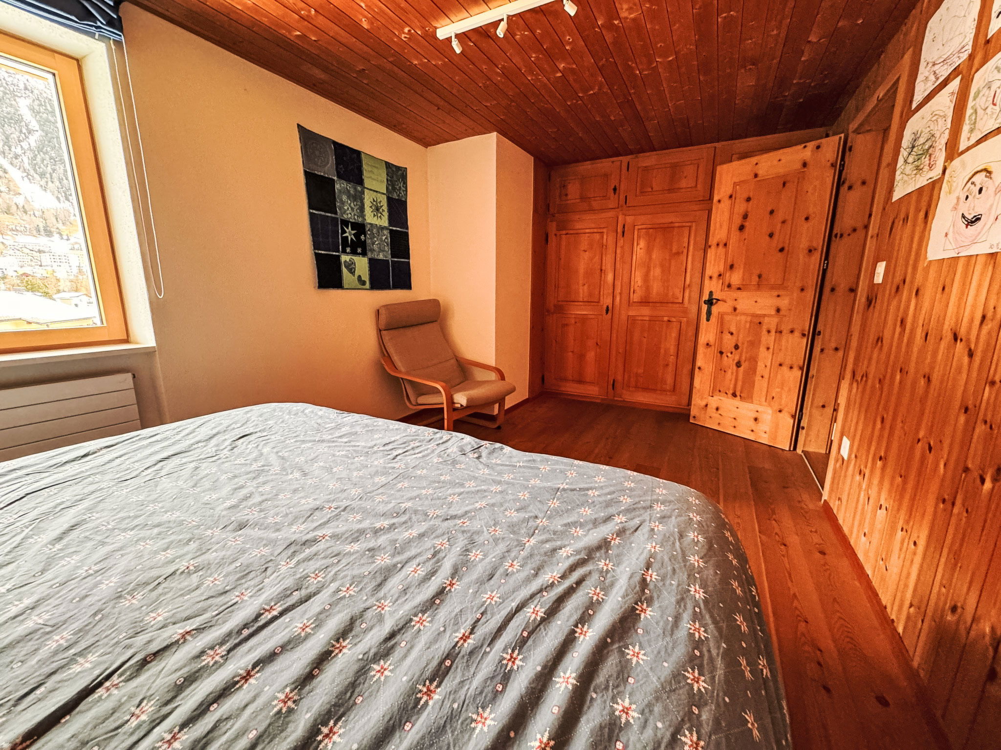 "Clavadels Pontresina", Appartement de 4 pièces 128 m2 au 2ème étage. Aménagement moderne et de style: séjour avec TV. 1 chambre avec 1 lit double. 1 chambre avec 1 lit double. 1 chambre avec 1 x 2 lits superposés. Cuisine ouverte (four, lave-vaisselle, 4 plaques à induction, grille-pain, micro-ondes, congélateur, cafetière électrique) avec table pour les repas. Douche/WC, WC séparé. Chauffage par le sol. Terrasse 20 m2. Vue latérale sur les montagnes. A disposition: lave-linge, sèche-linge, sèche-cheveux. Internet (Connexion WIFI, gratuit). Veuillez noter: logement non-fumeur. Maximum 1 animal/ chien autorisé. Extincteur.