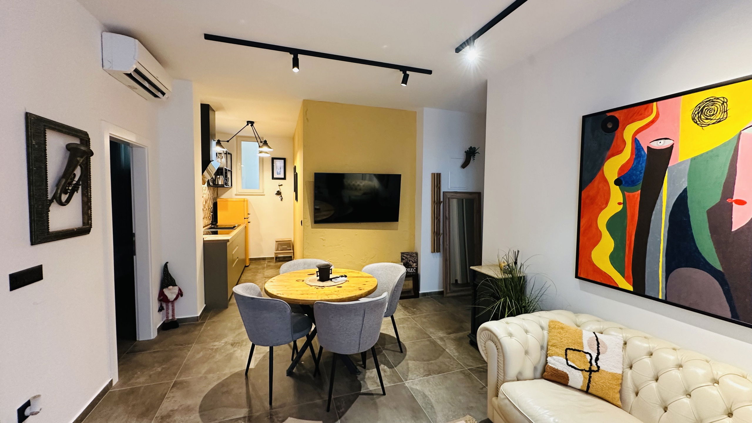 La location se trouve à 0 m de la plage de sable, 0 m de la plage de roche, 0 m du domaine de Golf, 0 m des pistes de ski, 50 m de la ville, 50 m du restaurant, 50 m de la cafétéria, 100 m du supermarché, 250 m de la gare routière, 400 m du parc, 800 m de l'hôpital, 2 km du parc aquatique "Aquacolors Porec", 7 km du parc d'attractions "Dino park", 25 km des thermes "Istarske toplice", 50 km de l'aéroport "Pula", 50 km du parc naturel "Brioni", 50 km de l'aéroport "Pula", 70 km de la gare "Trieste", 110 km de l'aéroport "Trst", 110 km de l'aéroport "Trst" et il est situé dans une zone idéale pour enfants zone et près de la mer.