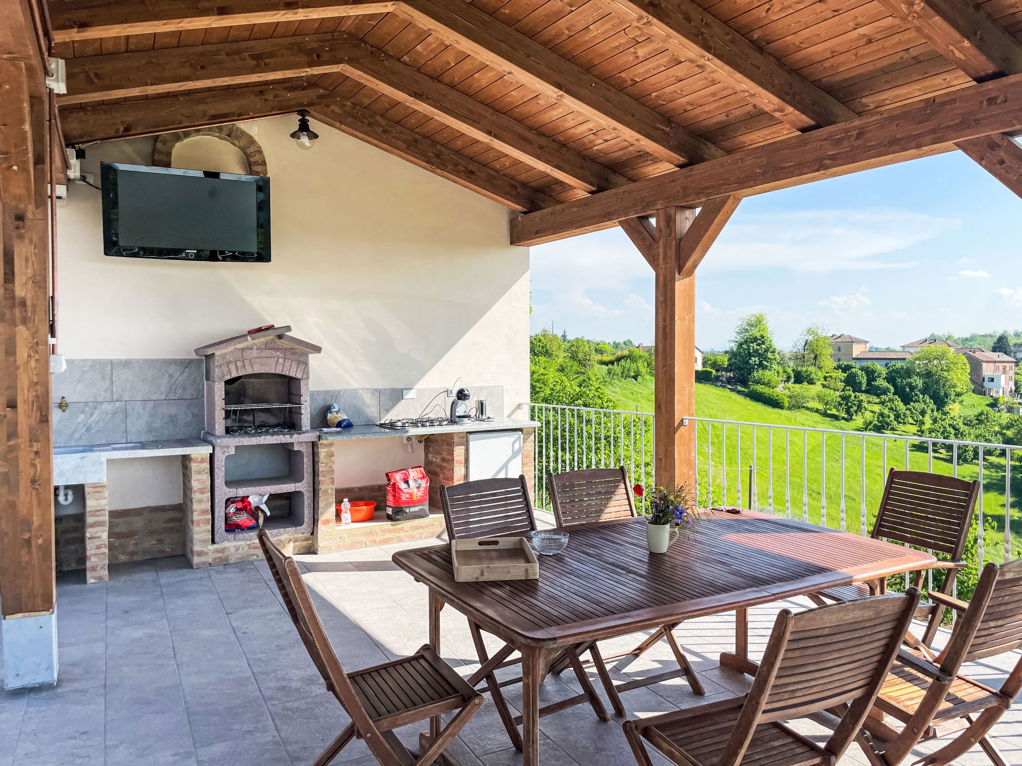 Maison à 3 apts accueillante de 2 étages, environnée par les champs et vignobles. En-dehors de la localité, à 2 km du centre de Portacomaro, situation tranquille, ensoleillée sur une colline. En commun: terrain à l'état naturel 1'500 m2 (clôturé) avec pelouse et arbres, piscine (11 x 4 m, profondeur 150 cm, disponibilité saisonnière: 01.Mai. - 15.Oct.). Douche extérieure, terrasse, meubles de jardin, place de parking près de la maison sur le terrain. Magasin d'alimentation 2 km, supermarché 5 km, restaurant 1 km, boulangerie 2 km, arrêt de bus 1.6 km. Attractions à proximité: Asti 12 km, Turin 50 km, Alba 35 km. Veuillez noter: voiture recommandée. Le propriétaire habite dans une partie de maison indépendante. Le propriétaire a un chien.