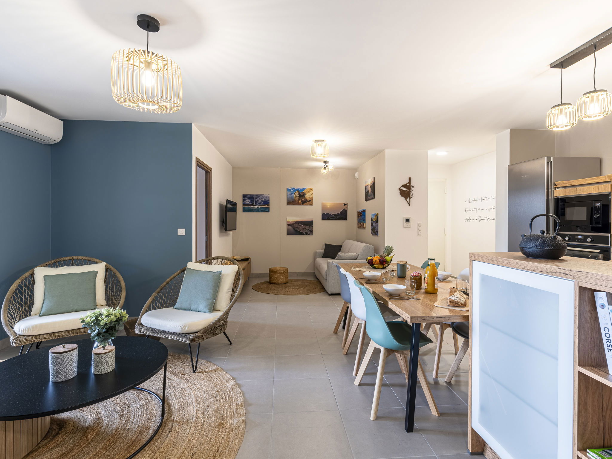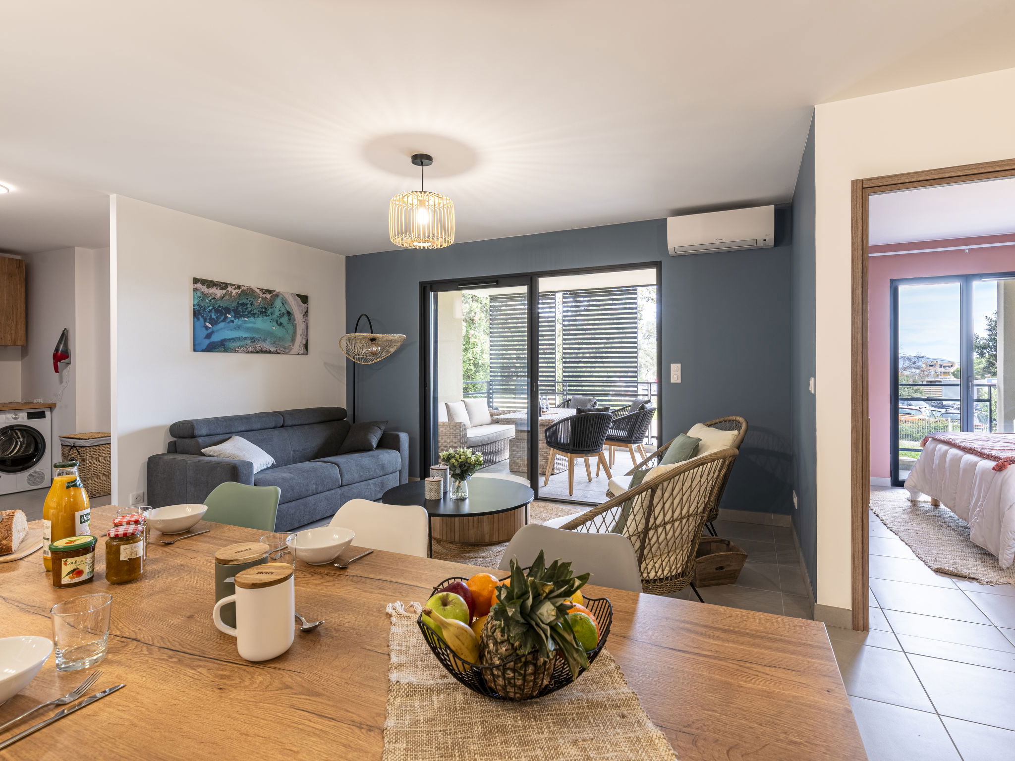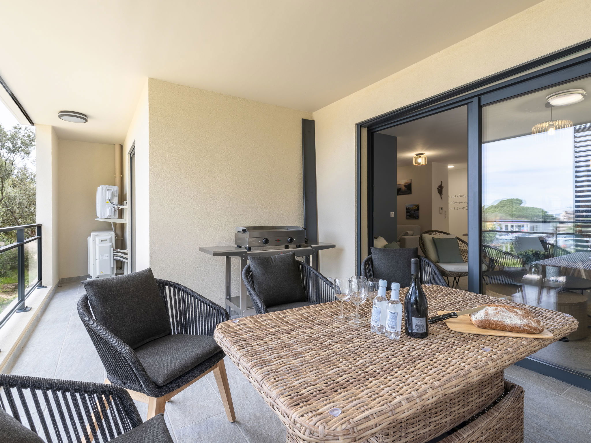 Résidence "Vignola 2", année de construction 2024. Au centre de Porto-Vecchio, situation centrale, tranquille, à 500 m de la mer, à 3 km de la plage, orientée nord. A usage privé: terrasse (16 m2), meubles de jardin, barbecue, place de parking. Magasin d'alimentation 100 m, supermarché, restaurant 400 m, arrêt de bus "Citadina" 50 m. Port plaisance 400 m. Attractions à proximité: Plage de Cala Verde 3 km, Plage de Santa Giulia 7 km, Plage de Palombaggia 10 km, Bonifacio 28 km. Les lacs connus sont facilement accessibles: Lac de L'Ospedale 24 km. Région de randonnées: Les Aiguilles de Bavella 49 km. Veuillez noter: voiture recommandée. Bien convenant à 4 adultes + 1 enfant.