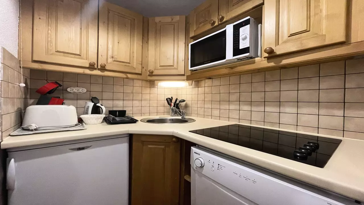 - Cuisine équipée : avec micro-ondes, lave-vaisselle, plaque de cuisson 4 feux vitrocéramique, réfrigérateur TOP, grille-pain, bouilloire, cafetière et machine Senséo.