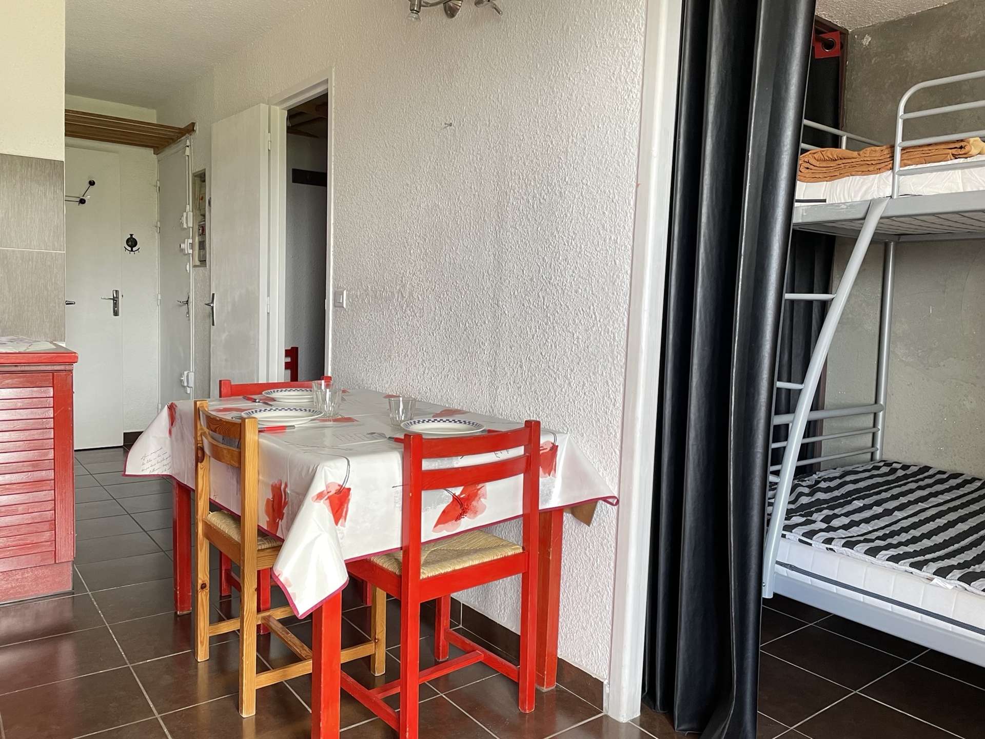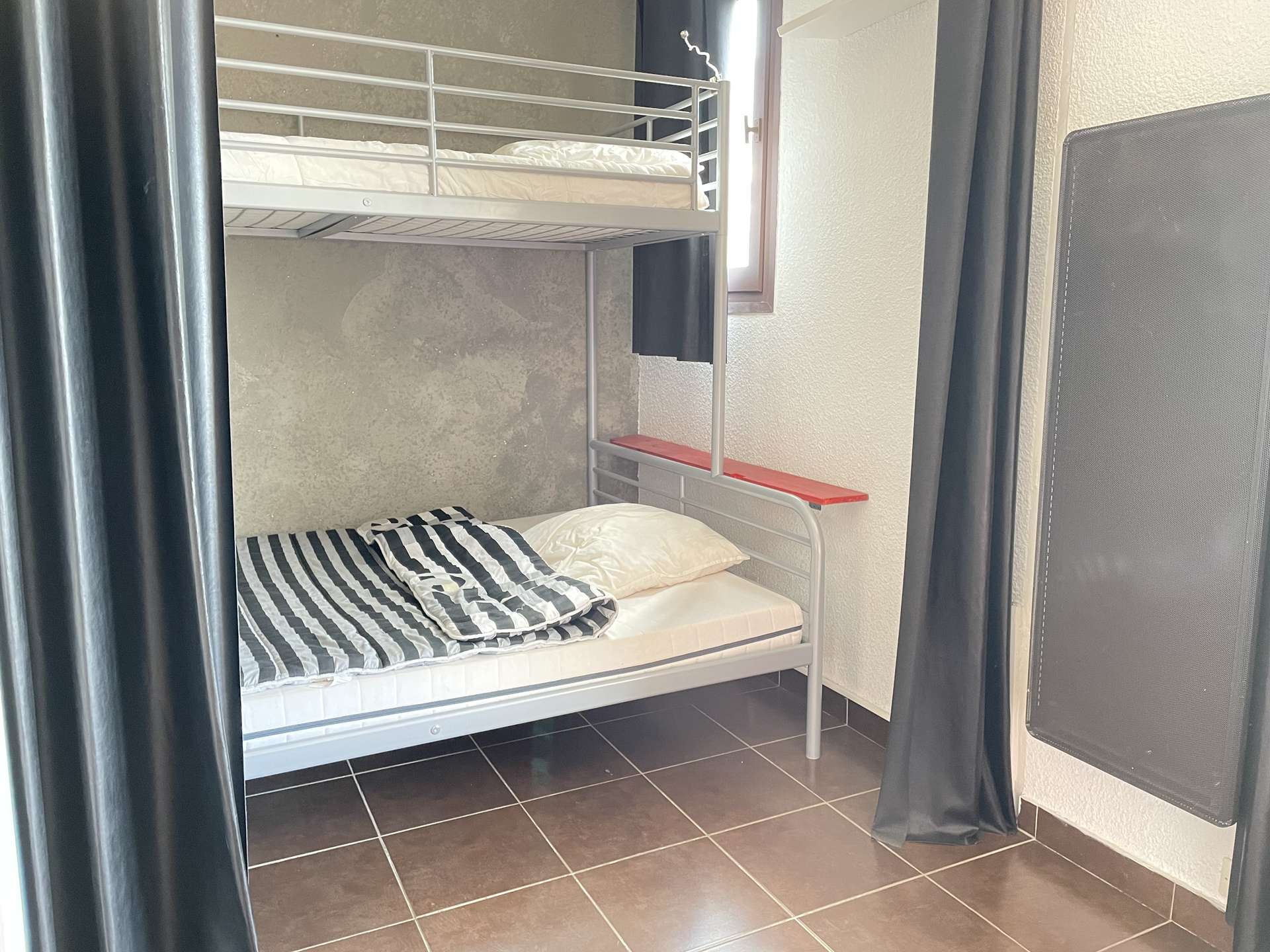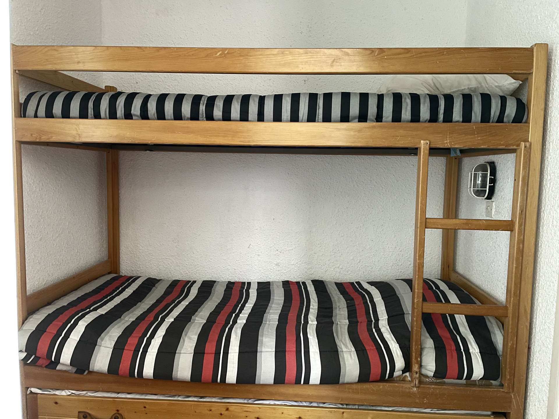L'appartement est composé d'une chambre avec deux lits superposés + un lit tiroir et au séjour d'un lit double et d'un lit mezzanine une place. La cuisine est équipée et fonctionnelle, et les WC sont indépendants de la salle de bain. L'appartement dispose aussi d'un casier à ski.