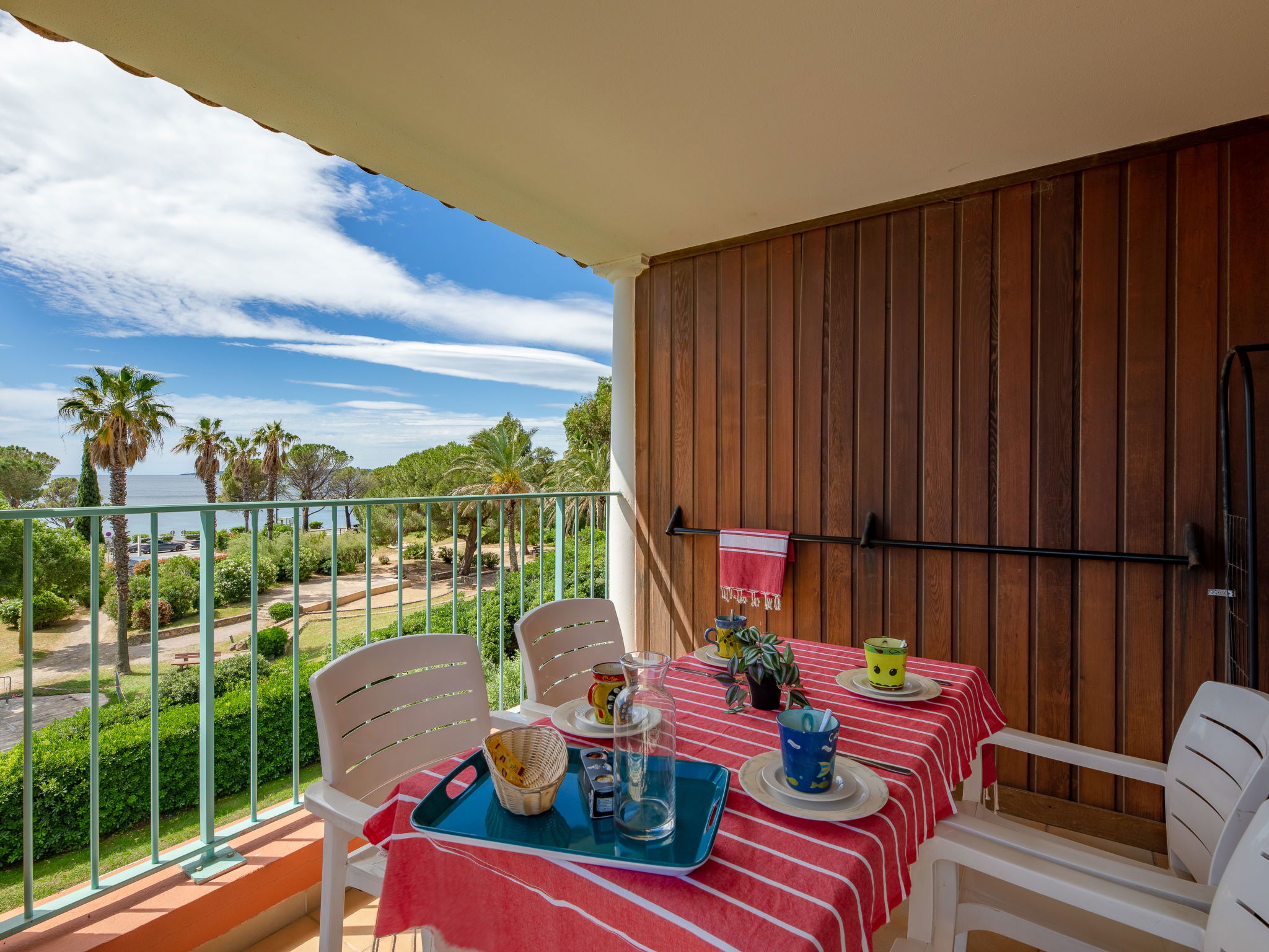 Appartement de 3 pièces 45 m2 au 2ème étage. Aménagement simple et fonctionnel: séjour/salle à manger avec 1 divan-lit double (1 x 140 cm, longueur 190 cm), TV. Sortie sur la terrasse. 1 chambre avec 1 grand-lit (140 cm, longueur 190 cm). Cabine avec 1 lit (80 cm, longueur 190 cm). Coin cuisine (4 plaques de cuisson, lave-vaisselle, grille-pain, bouilloire électrique, micro-ondes, cafetière électrique). Salle de bains, douche/WC. Chauffage électrique. Terrasse 10 m2, couverte, situation sud. Mobilier de balcon. Très belle vue sur la mer. A disposition: Internet (Connexion WIFI, en sus). Place de parking No 344. Veuillez noter: logement non-fumeur. 1 animal/ chien de petite taille autorisé. Détecteur de fumée. 83107000180H0