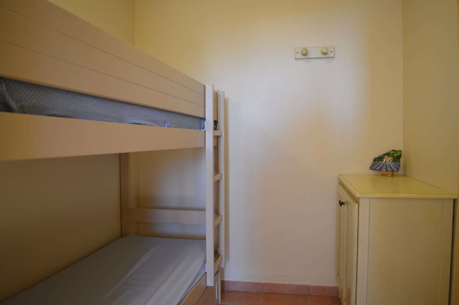 Rez-de-jardin avec une vue mer. Cette location comprend un séjour lumineux avec un divan lit deux places, un coin cuisine équipé avec un grand frigo congélateur, une salle de bain, une chambre avec 2 lits simples, un coin nuit 2 lits superposés enfants, une terrasse en rez de jardin avec une magnifique vue mer, sans vis-à-vis.