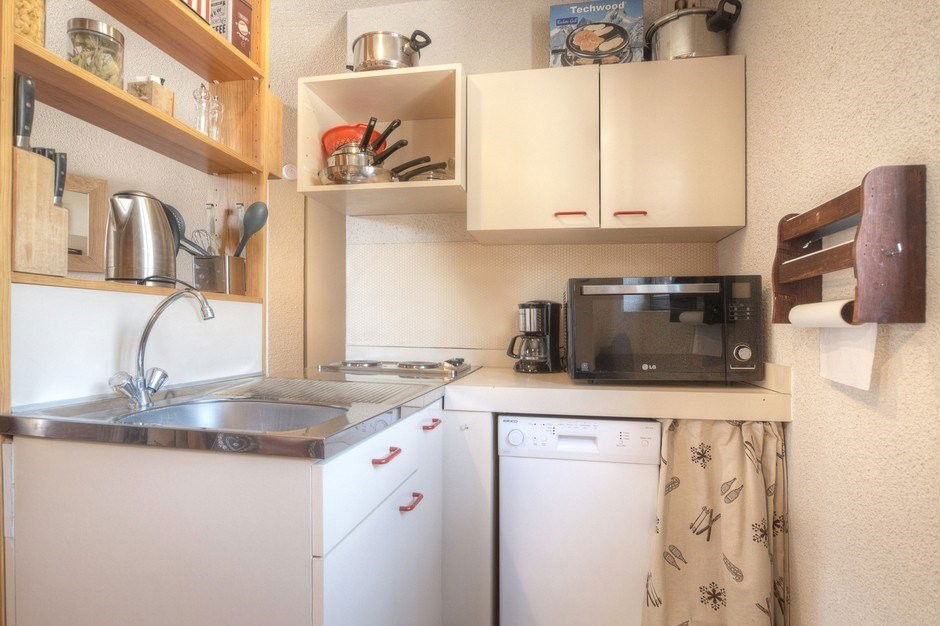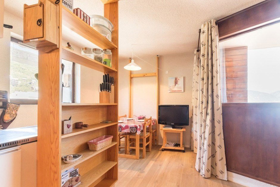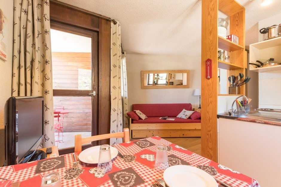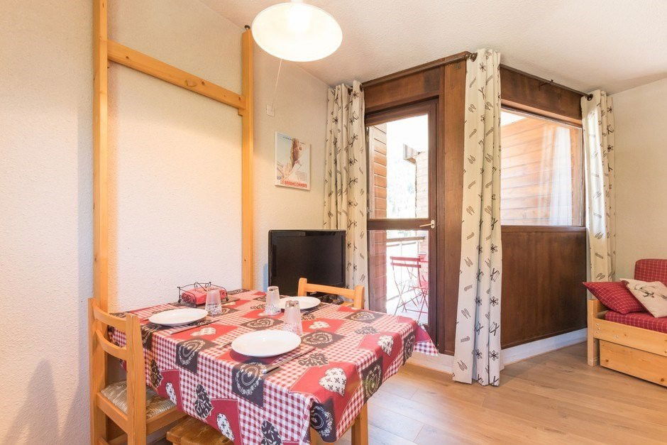 - Le séjour avec une banquette lits gigognes, téléviseur. Le balcon est équipé.