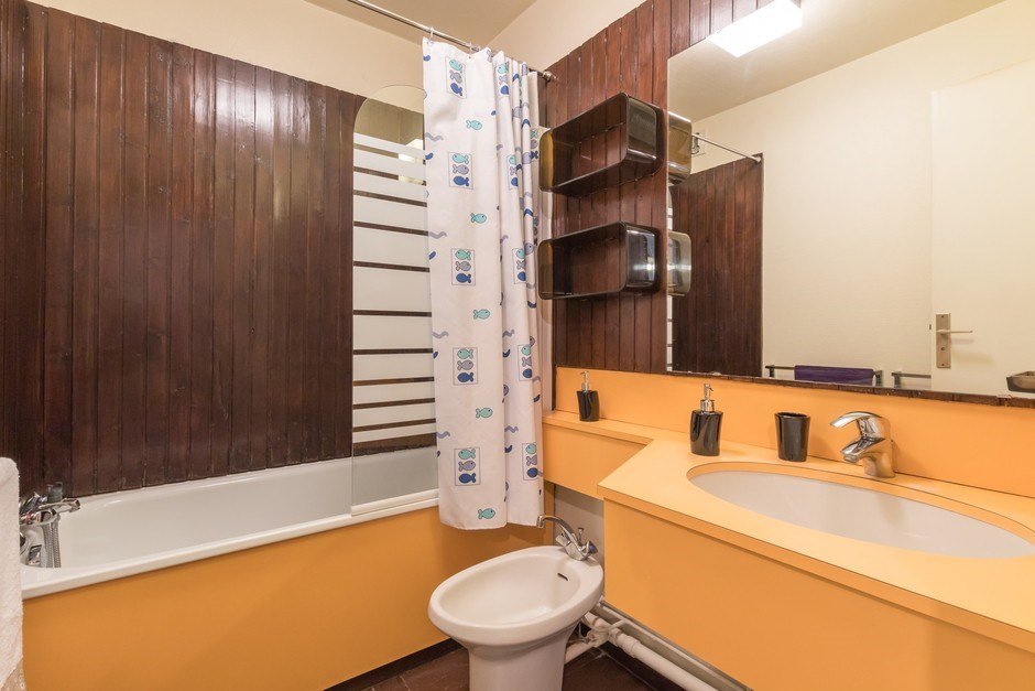 La salle de bains contient une baignoire. Les wc sont séparés.