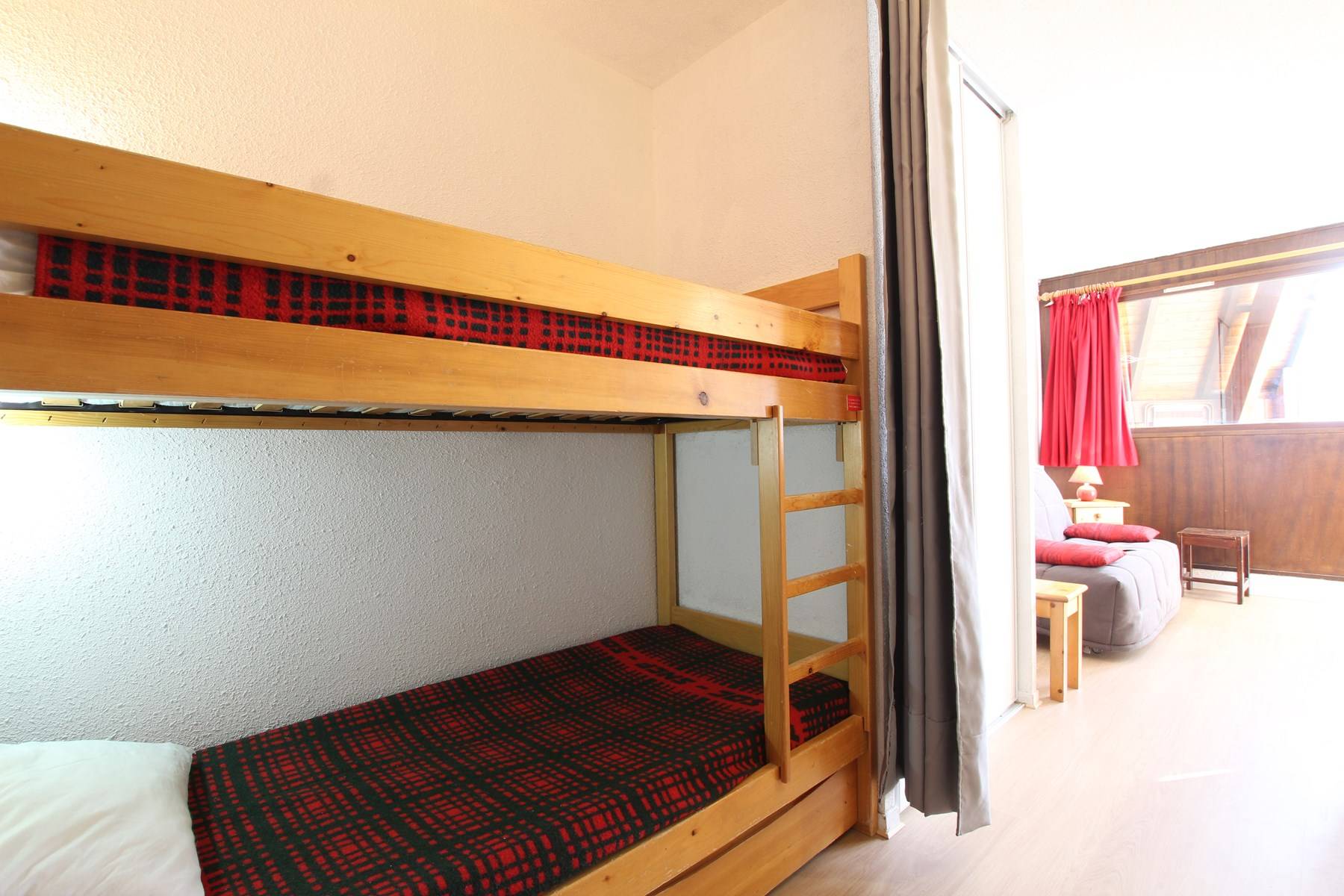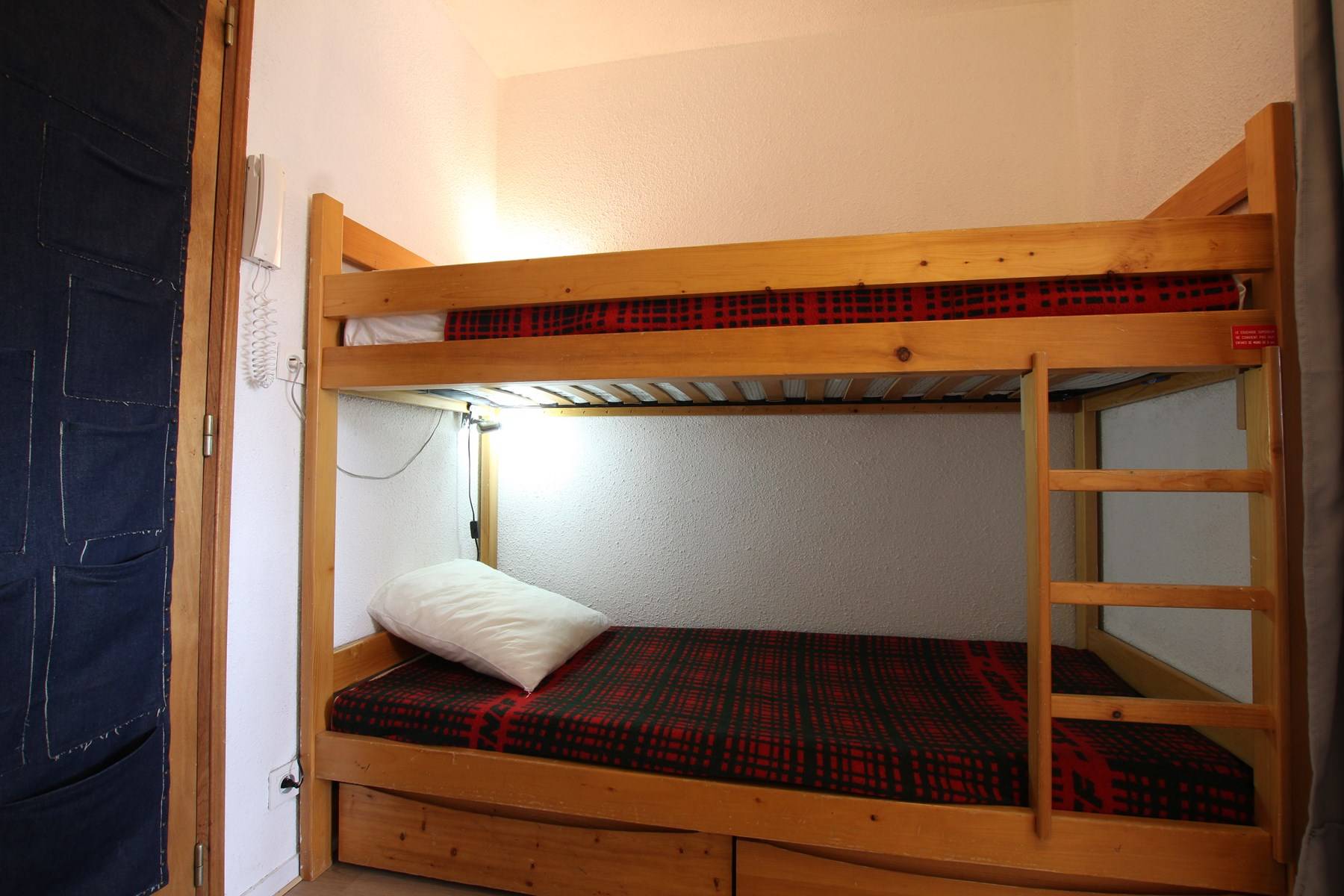 Dans l'entrée d'un coin montagne avec deux lits superposés.