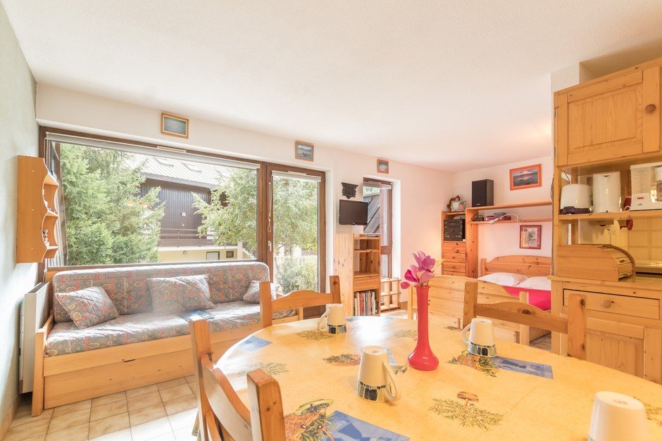 Studio coin montagne 4 personnes en Rez de chaussée avec jardinet exposé sud avec équipement.