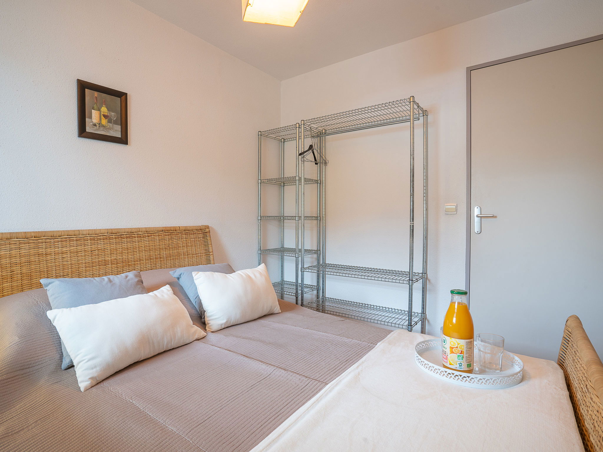 Appartement de 3 pièces 50 m2, au rez-de-chaussée. Aménagement agréable: séjour/salle à manger avec TV (écran plat). Sortie sur la loggia. 1 chambre avec 1 grand-lit (140 cm, longueur 200 cm). 1 chambre avec 2 lits (90 cm, longueur 190 cm). Grande cuisine ouverte (4 plaques de cuisson, four, lave-vaisselle, micro-ondes, congélateur, cafetière électrique). Salle de bains, WC séparé. Chauffage électrique. Terrasse 15 m2, situation est. Meubles de terrasse, loggia. A disposition: Internet (Connexion WIFI, gratuit). Place de parking. Veuillez noter: maximum 1 animal/ chien autorisé. Détecteur de fumée.