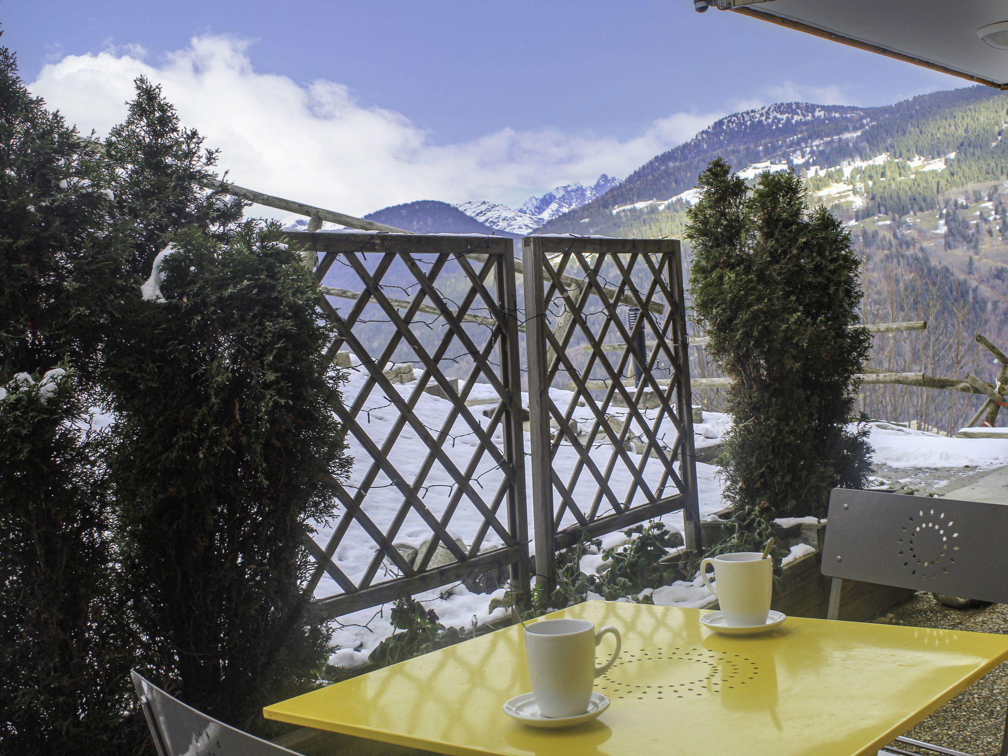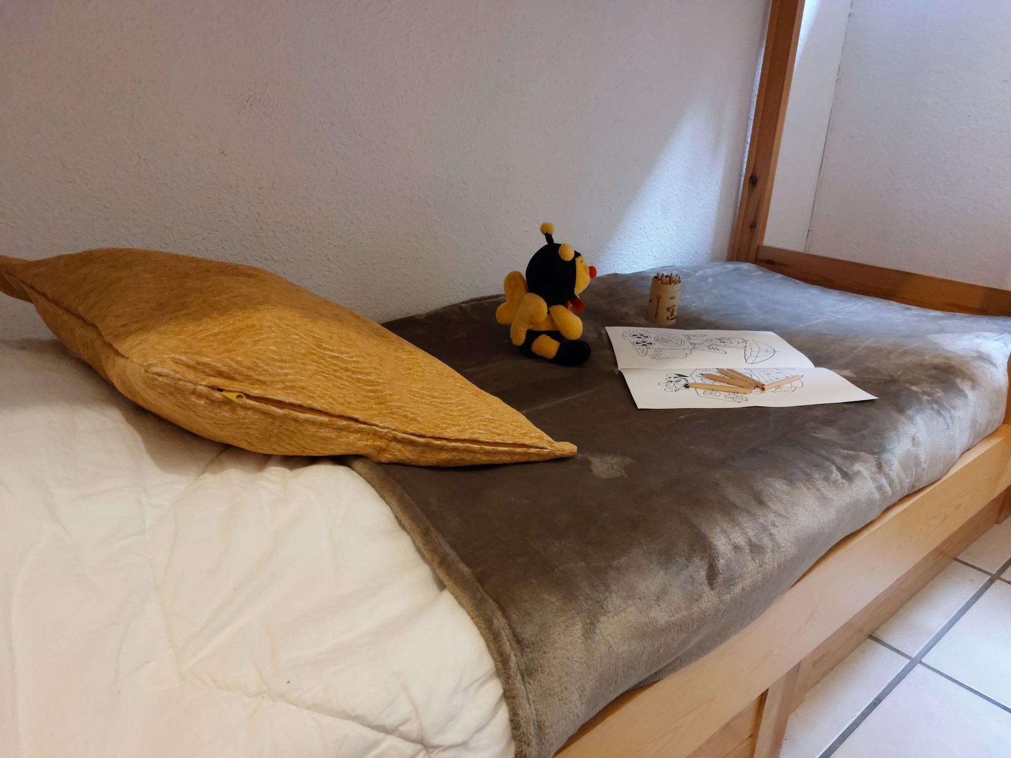 Studio 21 m2, au rez-de-chaussée. Séjour/salle à manger avec 1 divan-lit double (140 cm, longueur 190 cm), TV. Sortie sur la terrasse. Alcôve avec 1 x 2 lits superposés (80 cm, longueur 190 cm). Coin cuisine (2 plaques de cuisson, mini-four, grille-pain, bouilloire électrique, cafetière électrique, combiné micro-ondes). Bain/WC. Chauffage électrique, chauffe eau. Petite terrasse, situation nord. Meubles de terrasse. A disposition: Internet (Connexion WIFI, en sus). Place de parking à 75 m. Veuillez noter: maximum 1 animal/ chien de petite taille autorisé. TV seulement FR. Détecteur de fumée, sans ascenseur. 60 marches pour accéder à la résidence. Au lieu d'une chambre fermée, des espaces de couchage sont situés dans une zone ouverte (galerie, alcôve...).