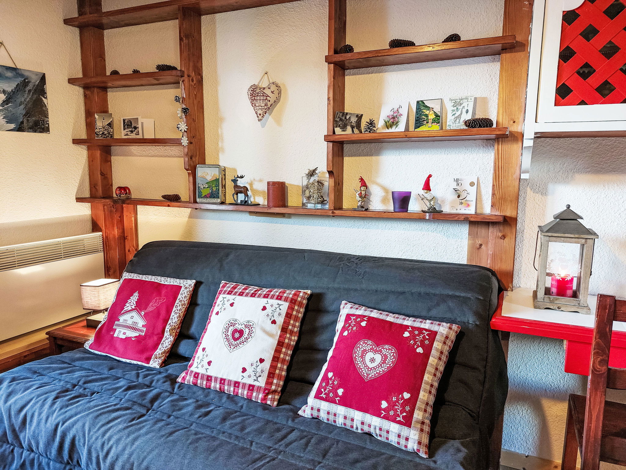 Studio 20 m2 au 1er étage. Entrée avec 1 x 2 lits superposés (80 cm, longueur 190 cm). Séjour/salle à manger avec 1 divan-lit double (140 cm, longueur 190 cm). Coin cuisine (2 plaques de cuisson, grille-pain, bouilloire électrique, cafetière électrique, combiné micro-ondes). Salle de bains, WC séparé. Chauffage électrique. Petit balcon 4 m2, situation est. Belle vue sur les montagnes. A disposition: Internet (Connexion WIFI, en sus). Place de parking à 150 m. Veuillez noter: logement non-fumeur. 1 animal/ chien de petite taille autorisé. TV seulement FR. Détecteur de fumée, sans ascenseur. Annonce d'un particulier (art 155, IV du CGI).