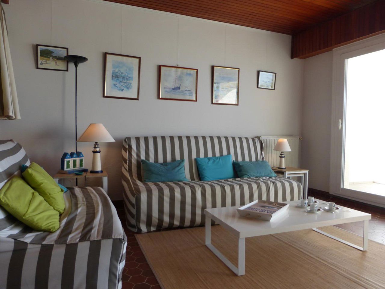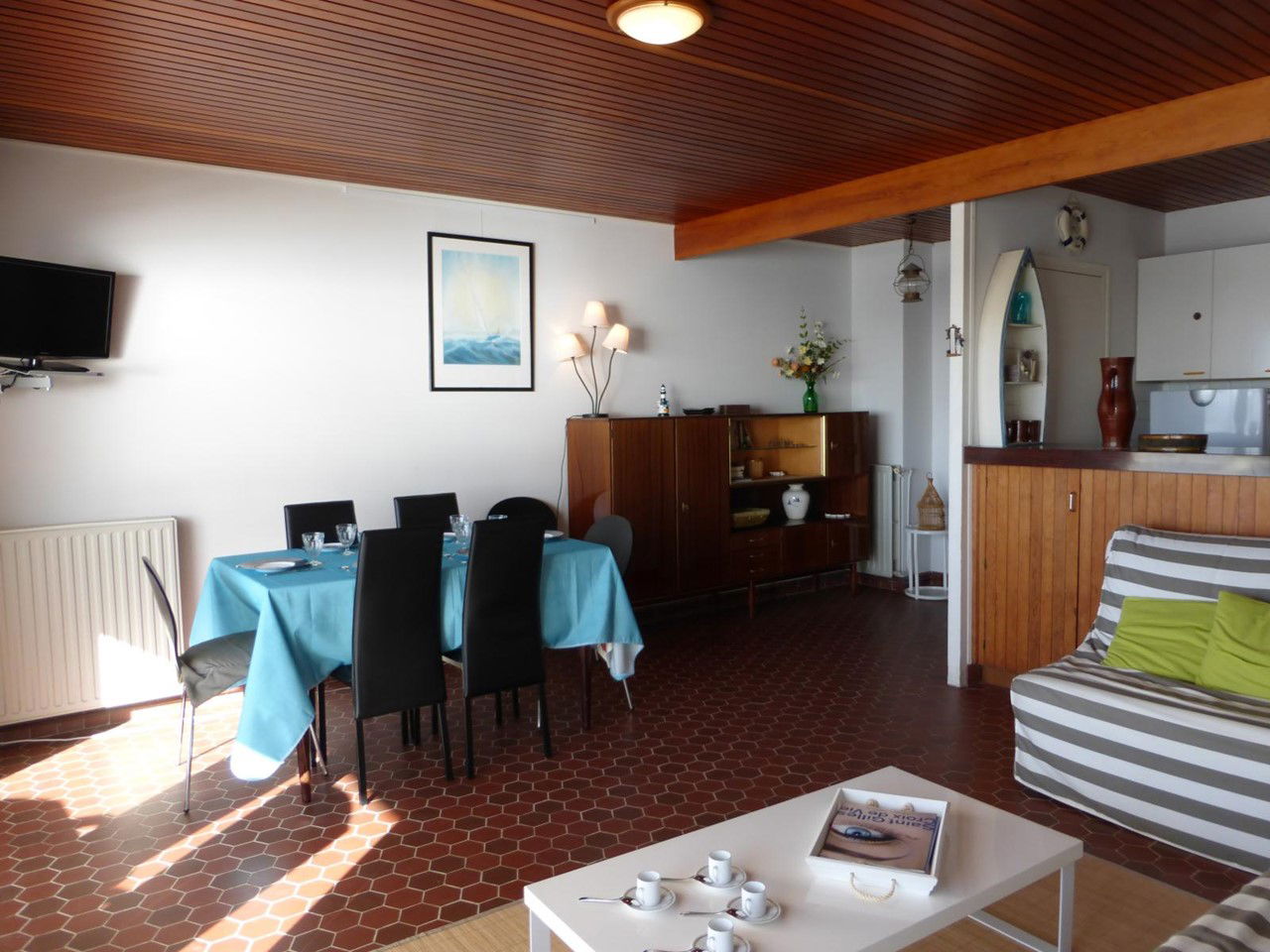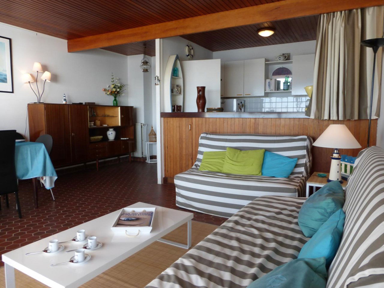 Située au pied du remblai et de ses commerces saisonniers, cette location à la mer vous offre une vue sur mer avec balcon et salon de jardin et comprend un coin-cuisine équipé avec micro-ondes et lave-vaisselle, un séjour avec deux canapés dont un convertible pour une personne et télévision, deux chambres totalisant 1 lit double (160) , 1 lit simple, 2 lits simples superposés, une salle de bains avec lave-linge, wc,