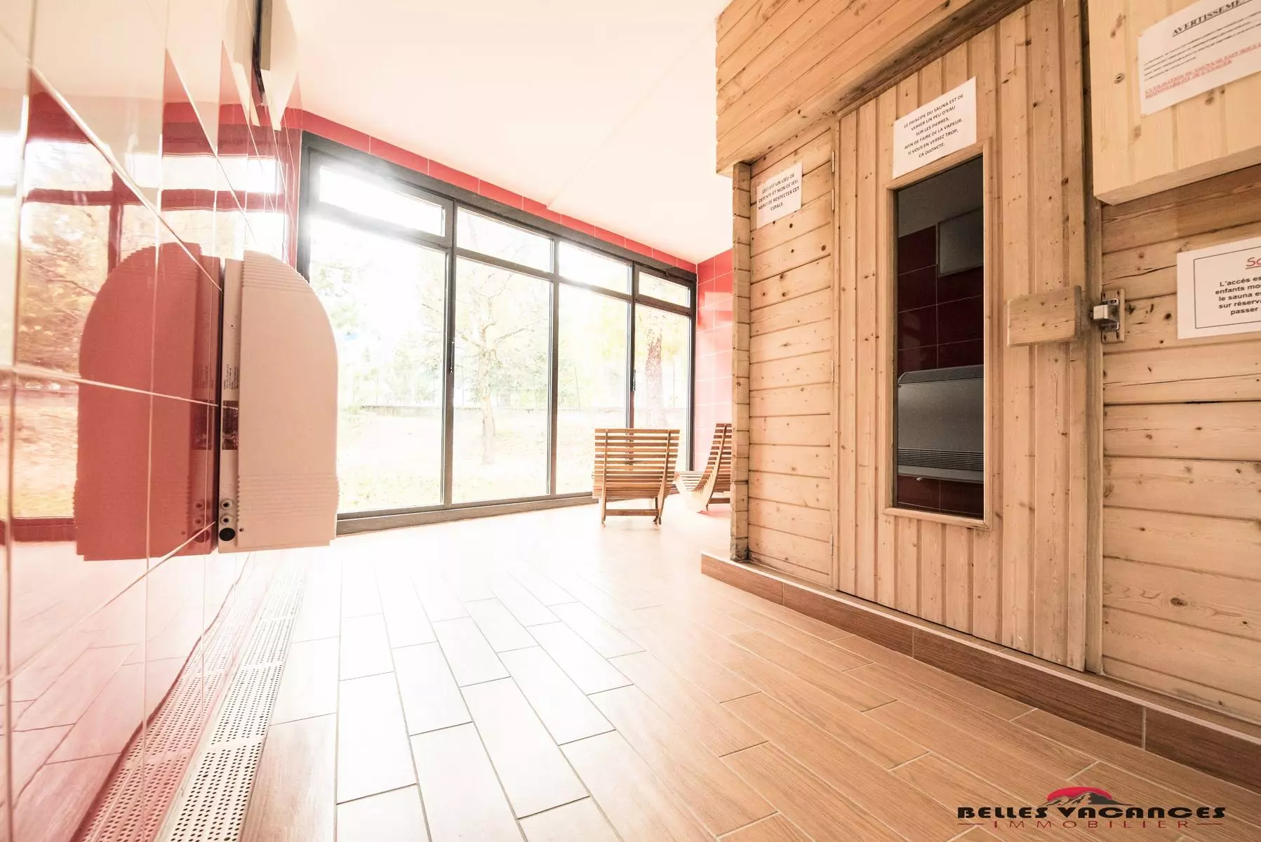 Elle dispose d'un grand espace commun avec des salons douillets, une cheminée, un bar à disposition, un billard, un baby foot et un jeu vidéo mais également pour vos vacances estivales une piscine qui fera le bonheur des petits et des grands (ouverte du 15 juin au 15 septembre).Au sous sol vous trouverez une laverie.