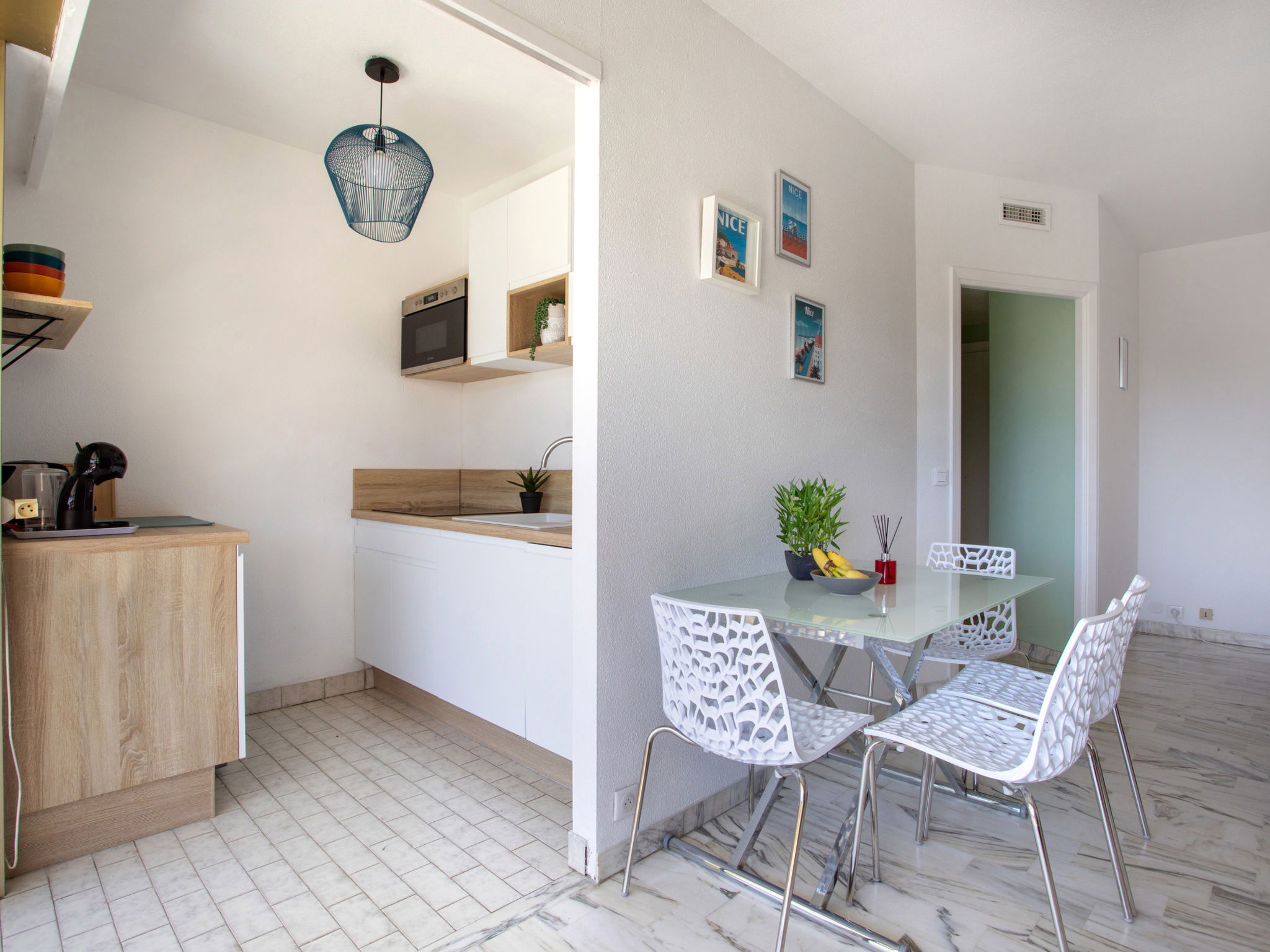 Belle résidence "le ponant". Situation tranquille, ensoleillée, à 100 m de la mer, à 100 m de la plage, route à traverser. Infrastructures de la Maison: ascenseur. Place de parking. Centre commercial 1.5 km, restaurant, bar, café 50 m, arrêt de bus "surcouf" 250 m, plage de sable "Plage des flots Bleu" 600 m, plage de galets 80 m. Port plaisance 50 m, ecole de voile 300 m, tennis 250 m. Attractions à proximité: Centre Commercial Cap 3000 1.5 km, Musée Renoir 3.5 km, Nice 10 km, Antibes 12 km, Saint Paul de Vence 10 km. Les lacs connus sont facilement accessibles: Lac du Broc 23 km. Région de randonnées: Parc National du Mercantour 57 km, Col de Vence 22 km. Veuillez noter: night-club/discothèque à proximité.