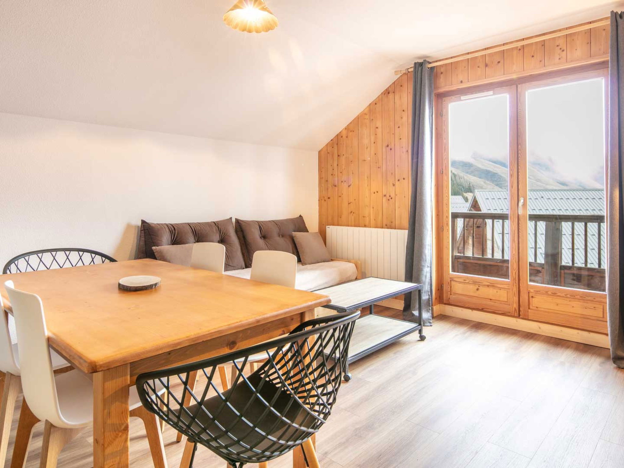 "Les Marmottes", Appartement de 3 pièces 42 m2 au 3ème étage. Logement idéal pour 6 adultes. 1 chambre avec 1 lit double et TV. 1 chambre avec 2 lits. Séjour avec 2 divans-lits. Cuisine (lave-vaisselle, 4 plaques à induction, grille-pain, bouilloire électrique, micro-ondes, congélateur, cafetière électrique). Bain/WC. Balcon. Vue sur les montagnes et les pistes de ski. Place de parking (1 Voiture). Veuillez noter: logement non-fumeur. 1 animal/ chien autorisé. Détecteur de fumée. Annonce d'un professionnel (art 155, IV du CGI)