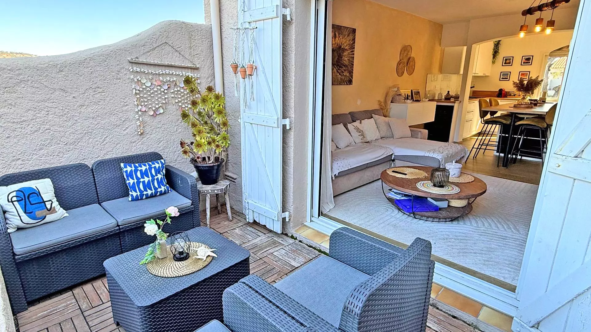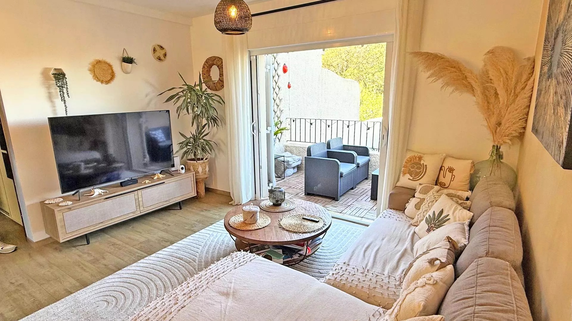 - Salon avec canapé convertible 160cm, télévision, accès terrasse