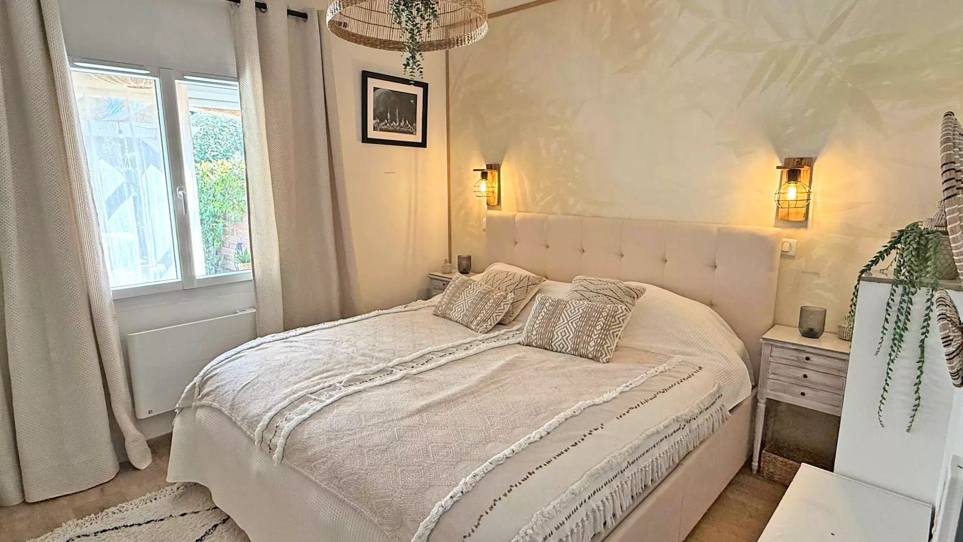 - Chambre climatisée avec lit double 160 et placards
