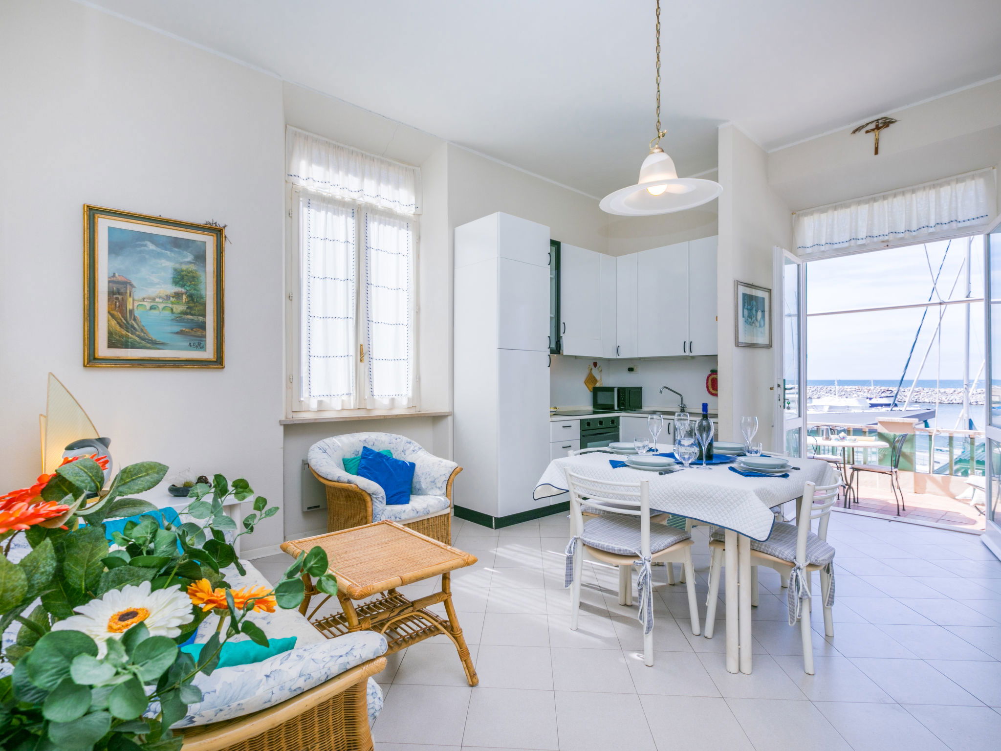 "Ponente N.2", Appartement de 3 pièces 90 m2, rez-de-chaussée surélevé. Clair, aménagement agréable et plaisant: séjour/chambre à coucher avec 1 couchage, table pour les repas, Télévision numérique et écran plat. Sortie sur la terrasse. 1 chambre double avec 1 lit double, chauffage électrique et air-conditionné. 1 chambre double avec 1 lit double, chauffage électrique et air-conditionné. Cuisine ouverte (four, lave-vaisselle, 4 plaques à induction, grille-pain, bouilloire électrique, micro-ondes, cafetière électrique). Sortie sur la terrasse. 2 douches/bidet/WC. Terrasse 16 m2 partiellement couverte. Superbe vue sur la mer et le port. A disposition: chaise haute pour enfant, lit bébé jusqu'à 2 ans. Internet (Connexion WIFI, gratuit). Veuillez noter: maximum 1 animal/ chien autorisé. Extincteur. Une autre partie de la terrasse est partiellement utilisée par le propriétaire, il accède à son appartement par celle-ci. IT049018B4SDV67CM5