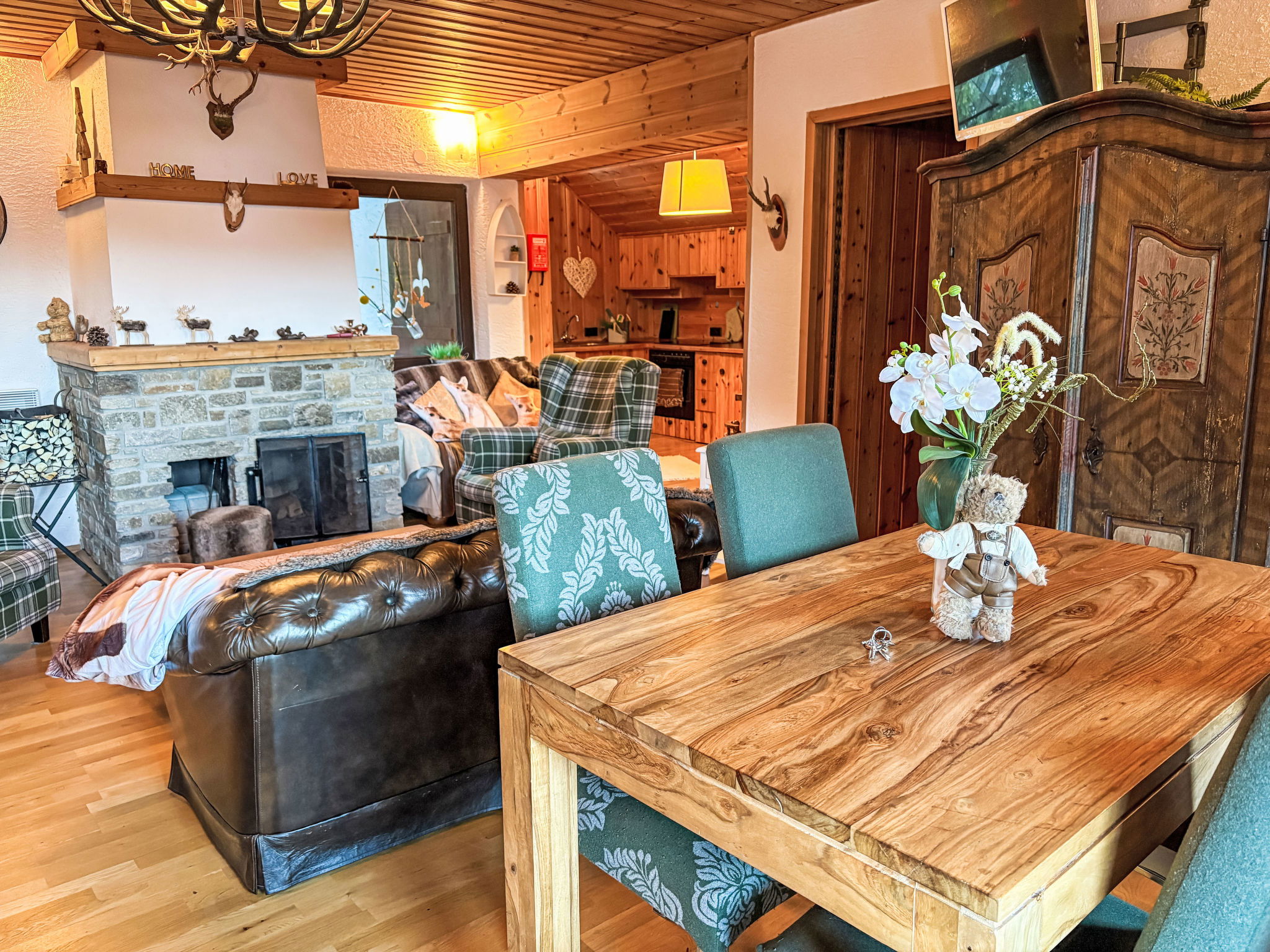 "Silvia", Appartement de 3 pièces 70 m2, à l'étage supérieur. Aménagement confortable et avec beaucoup de bois: 2 chambres doubles. Séjour/salle à manger avec cheminée, table pour les repas, TV et écran plat. Cuisine ouverte (four, lave-vaisselle, 4 plaques vitrocéramiques, grille-pain, bouilloire électrique, cafetière électrique). WC séparé, bain/douche/WC. Chauffage électrique. Mobilier confortable de style campagnard. Grand balcon. Mobilier de balcon. Très belle vue sur les montagnes. A disposition: Internet (Connexion WIFI, gratuit). Veuillez noter: adapté(e) aux familles. Logement non-fumeur. Maximum 1 animal/ chien autorisé. Détecteur de fumée. 50511-000054-2020