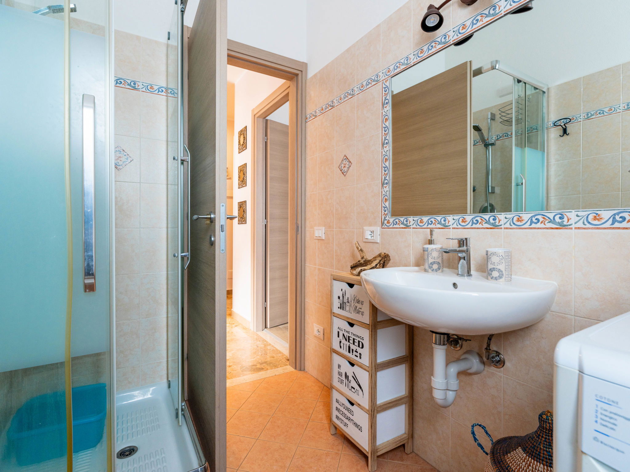 "Atena", Appartement de 3 pièces 80 m2 au 1er étage. Aménagement de bon goût et plaisant: séjour/salle à manger avec 1 divan-lit (140 cm, longueur 200 cm), TV. Sortie sur le balcon. 1 chambre double. Sortie sur le balcon. 1 chambre avec 1 lit (90 cm, longueur 200 cm), 1 couchage. Coin cuisine (lave-vaisselle, 4 feux, grille-pain, bouilloire électrique, cafetière électrique). Chauffage au gaz, air-conditionné, chauffage à air chaud. Possibilité de chauffage uniquement du 01.11. au 15.04. Balcon. Mobilier de balcon. Vue sur la mer et la localité. A disposition: lave-linge, chaise haute pour enfant, lit bébé jusqu'à 2 ans, sèche-cheveux. Internet (Connexion WIFI, gratuit). Maximum 1 animal/ chien autorisé. IT008056B4TH3LYEWH