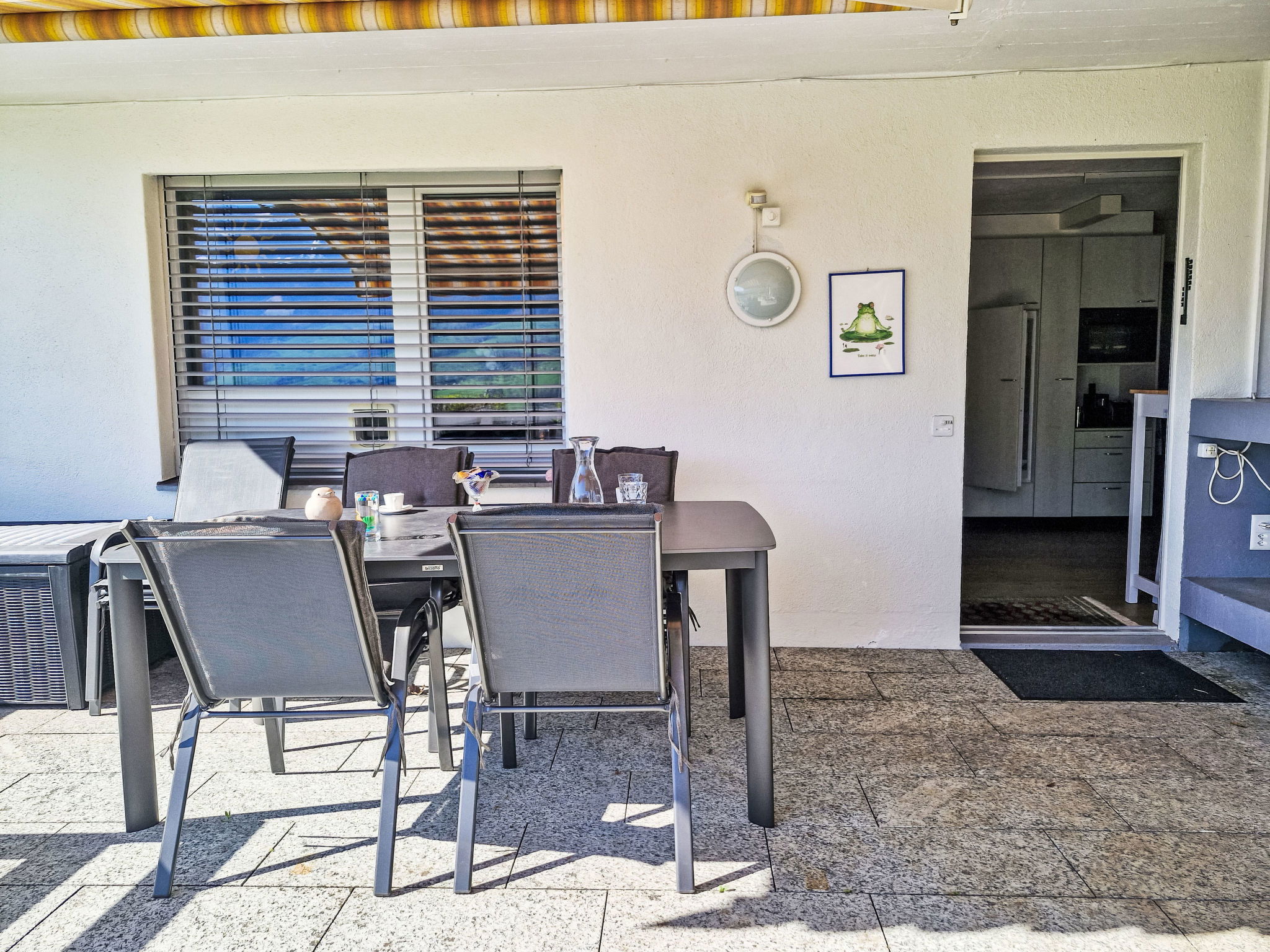 "Sonnentraum", Appartement de 3 pièces 110 m2, au rez-de-chaussée. Aménagement de style: séjour avec 1 divan-lit et TV. 1 chambre avec 1 lit double. 1 chambre avec 1 lit double. Cuisine (four, lave-vaisselle, 4 plaques vitrocéramiques, grille-pain, bouilloire électrique, congélateur, cafetière électrique, four à vapeur) avec table pour les repas. Bain/WC, douche, WC séparé. Chauffage au fuel chauffage par le sol. Terrasse 25 m2. Barbecue. Belle vue sur le lac et les montagnes. A disposition: lave-linge, sèche-linge, chaise haute pour enfant, lit bébé, sèche-cheveux. Internet (Connexion WIFI, gratuit). Veuillez noter: logement non-fumeur. Maximum 2 animaux/ chiens autorisés.