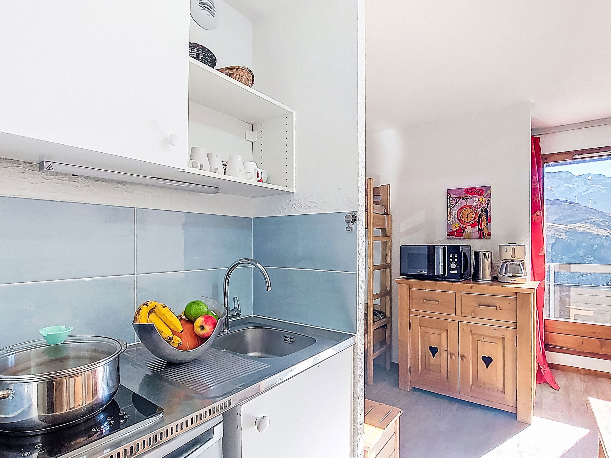 "Cimes de Caron 1603" studio 24 m2 au 6ème étage, situation sud. Clair, aménagement très confortable: séjour/salle à manger avec 1 x 2 lits superposés (80 cm, longueur 190 cm), TV (écran plat), radiateur électrique. Sortie sur le balcon, orientée sud. 1 petite chambre ouverte avec 1 grand-lit (140 cm, longueur 190 cm), radiateur électrique. Coin cuisine (2 plaques de cuisson, cafetière électrique, appareil à raclette, combiné micro-ondes). Douche/WC. Petit balcon 2 m2, situation sud. A disposition: Internet (Connexion WIFI, en sus). Veuillez noter: logement non-fumeur. Maximum 1 animal/ chien autorisé. Détecteur de fumée. 73257010873DP