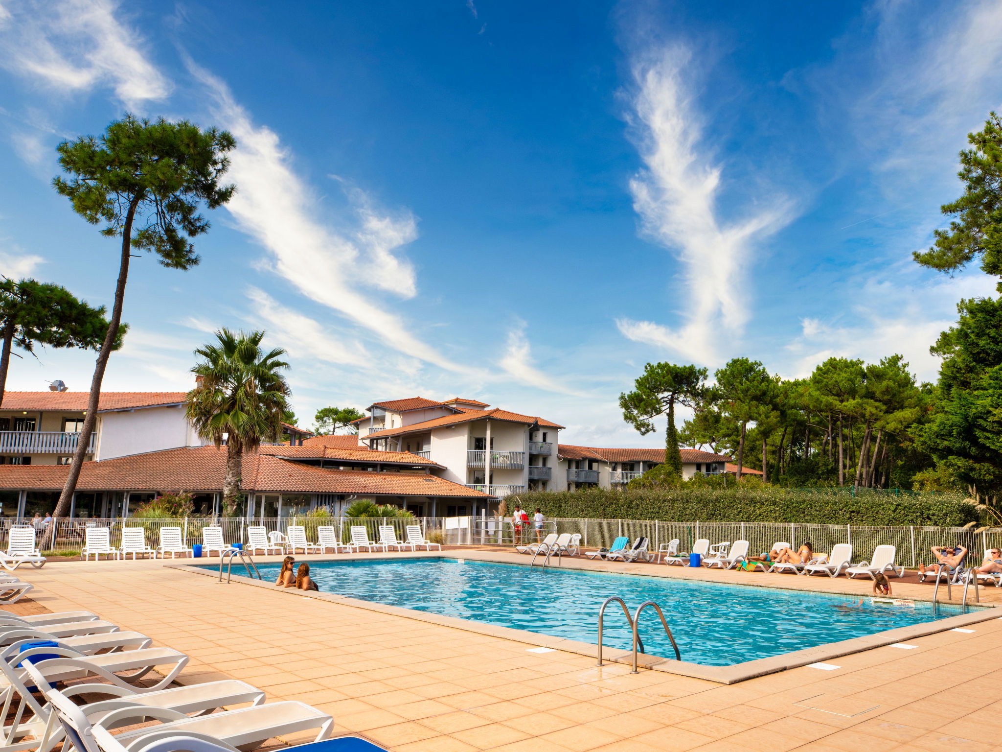 Complexe de vacances "Sowell Family Pignada Plage", de 4 étages. 2 maisons dans la résidence. 111 appartements dans la résidence. Dans le quartier de Port d'Albret, à 900 m du centre de Vieux-Boucau, à 7.5 km du centre de Soustons, à 15 km du centre de Hossegor, à 1.7 km de la mer, à 50 m du lac. En commun: terrain à l'état naturel avec arbres, piscine (18 x 9 m, profondeur 45 - 150 cm, disponibilité saisonnière: 01.Avr. - 30.Sep.). Tennis (en sus), ping-pong, terrain de pétanque. Infrastructures de la résidence: réception, restaurant, ascenseur, réduit pour bicyclettes, lave-linge, sèche-linge (en commun, en sus), location de bicyclettes. Place de parking (nombre de places limité). Magasins 900 m, plage de sable "Vieux-Boucau" 1.7 km, baignade en lac "Lac Marin de Port d'Albret" 50 m. Terrain de golf (18 trous) 10 km. Veuillez noter: La photo ne montre qu’un exemple de location de vacances. Les locations peuvent également se différencier par leur superficie, la disposition des pièces et leur équipement.