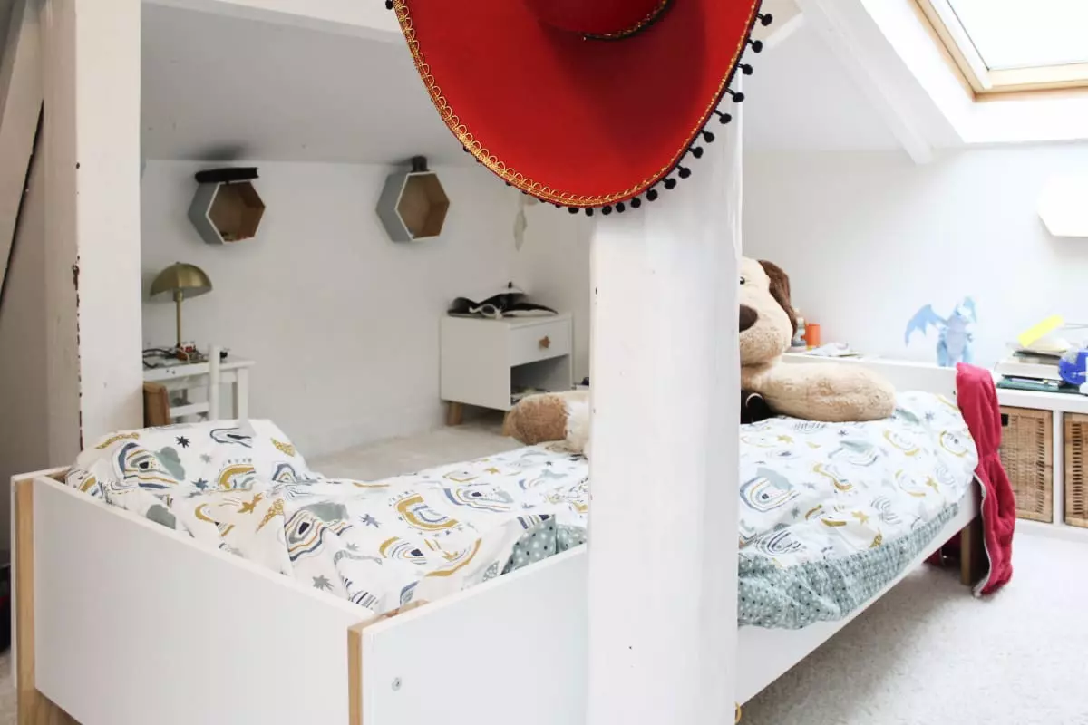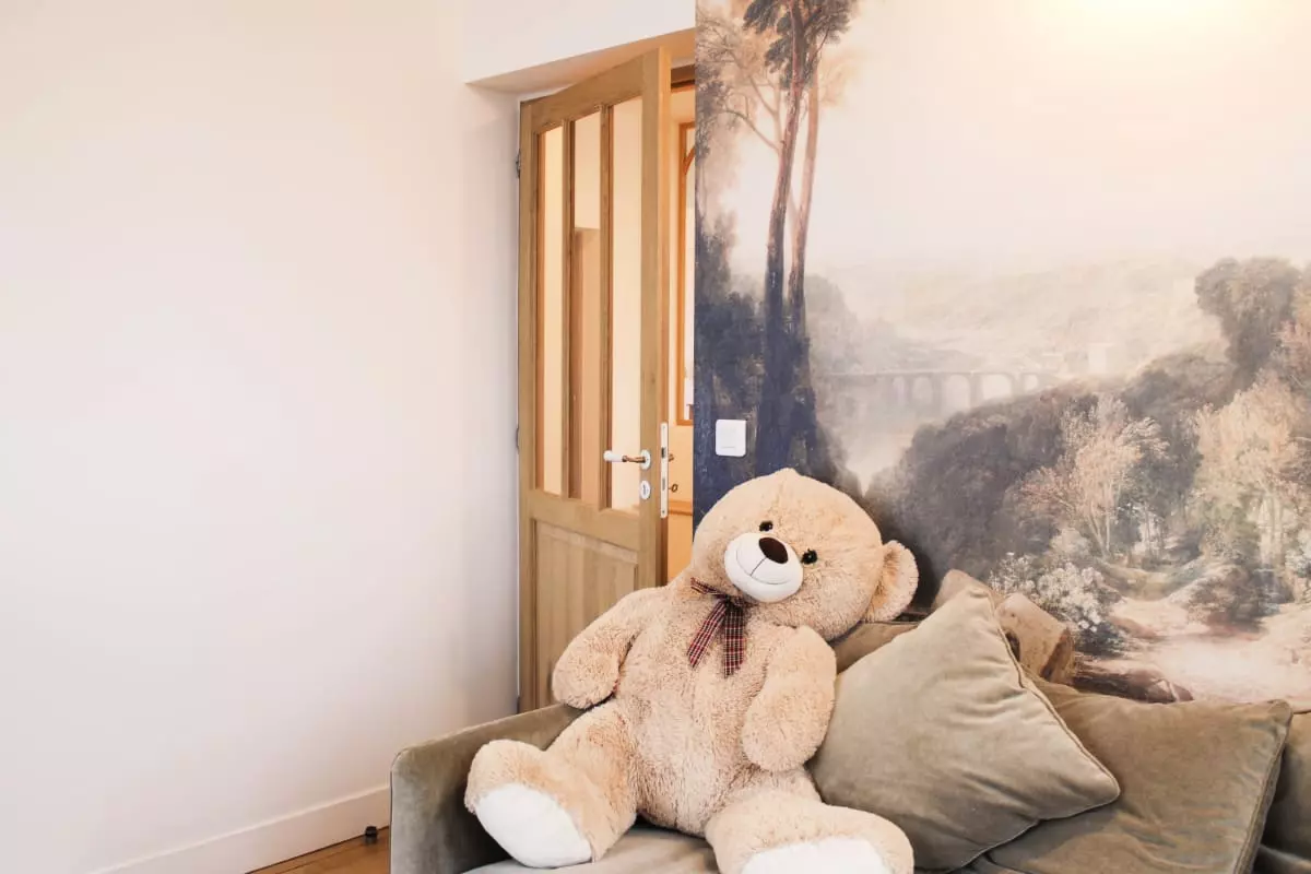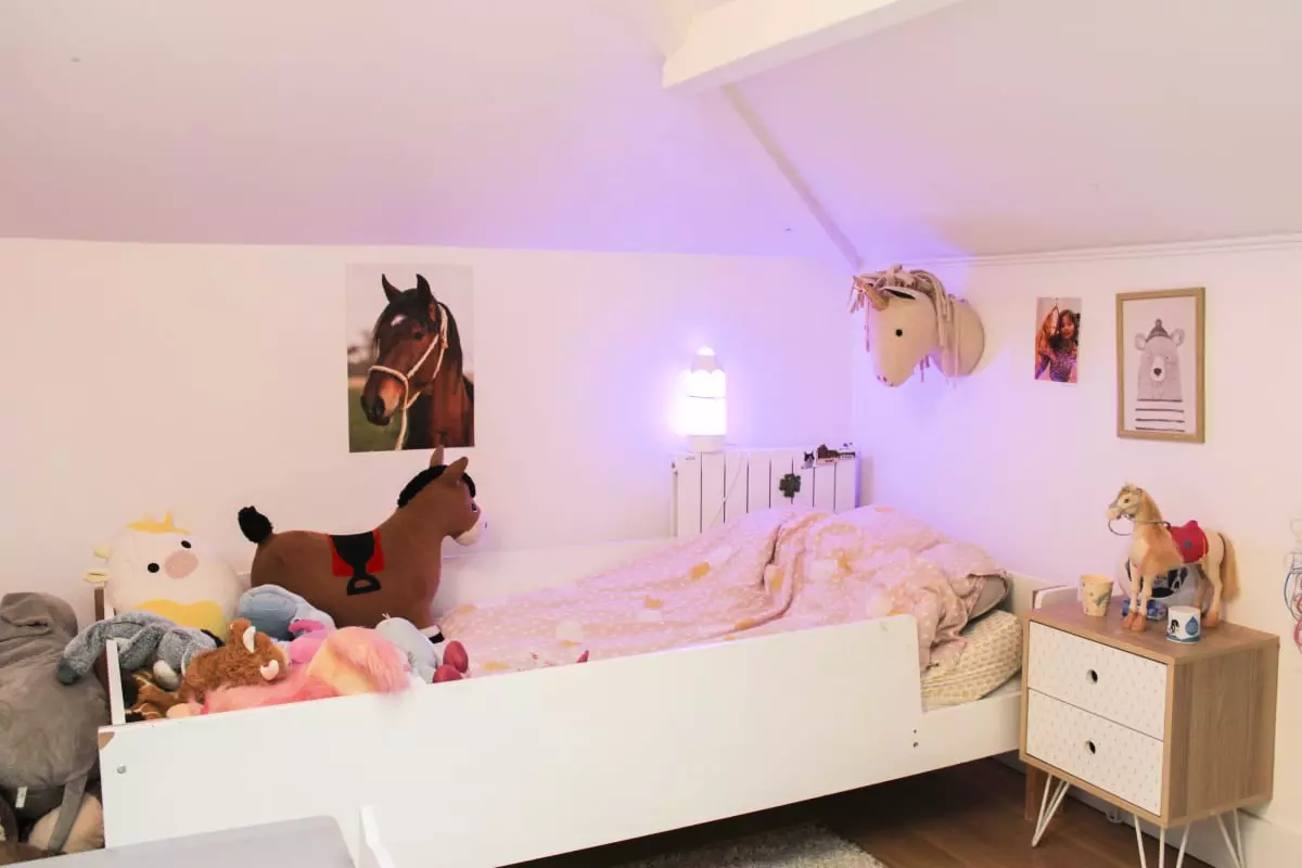 La chambre parentale de 25 m² dispose d’un lit double de 160×200, accompagnée d’un dressing et d’une salle de bain privative. Les autres chambres sont configurées pour le confort des adolescents, avec trois lits simples de 90×190 et un espace bibliothèque avec un canapé convertible de 160×200. De plus, un autre canapé convertible de 160×200 se trouve dans une salle ouverte, offrant une flexibilité supplémentaire pour vos couchages.