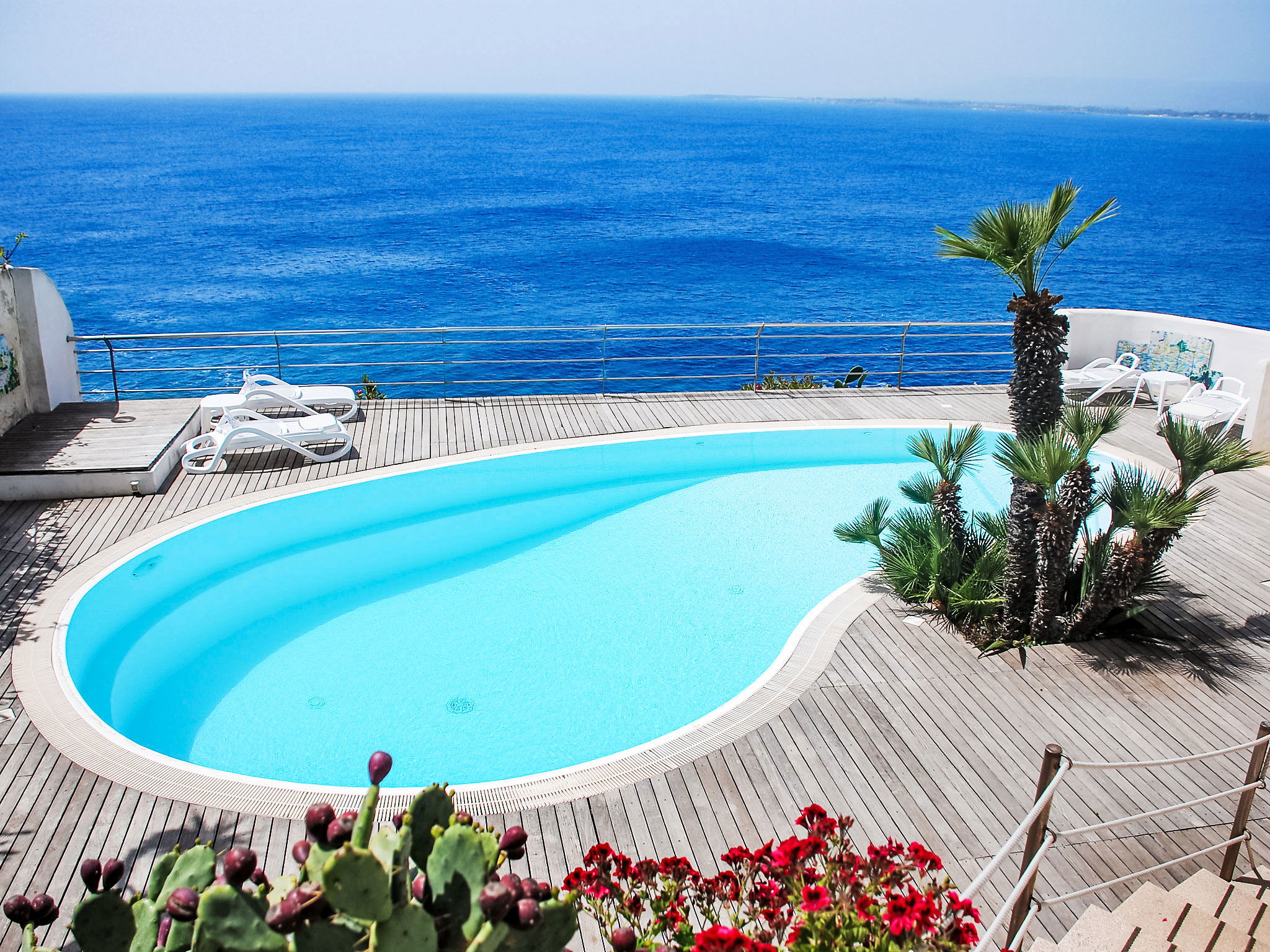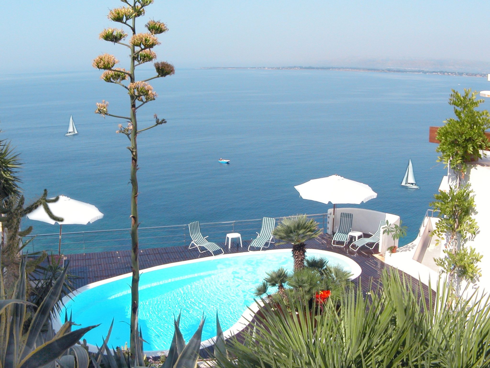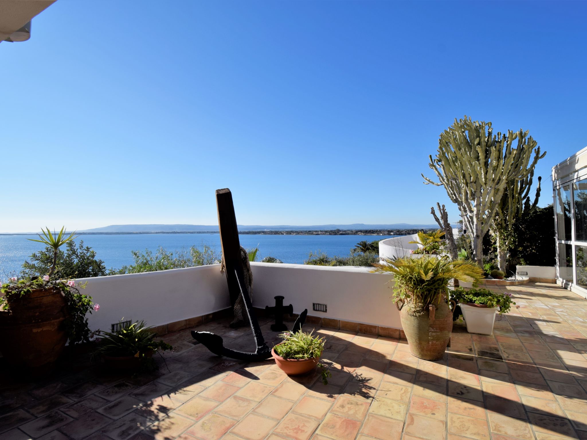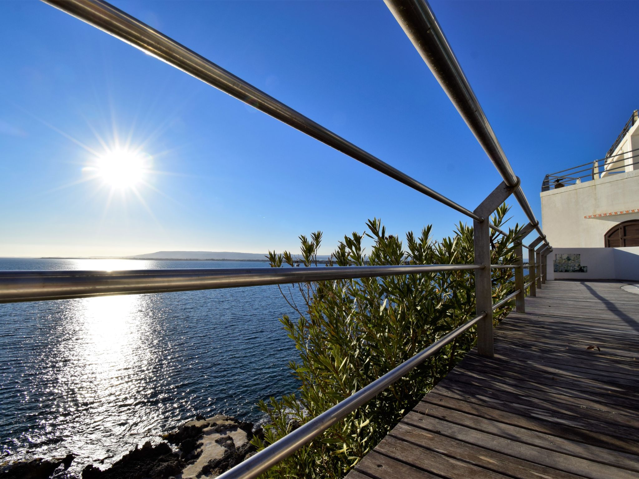 Complexe de vacances moderne "La Rosa". Località Plemmirio, à 9 km du centre de Siracusa, situation tranquille, ensoleillée, juste au bord de la mer. En commun: jardin sur plusieurs niveaux, 3'000 m2 avec pelouse et plantes, piscine (10 x 5 m, profondeur 120 - 220 cm, disponibilité saisonnière: 01.Jan. - 31.Dec.). Infrastructures de la résidence: réception, Connexion WIFI, blanchisserie (en sus). Bar 1 km, arrêt de bus 300 m, plage de sable "Arenella" 5 km, plage de rochers "Plemmirio" 30 m. Attractions à proximité: Noto 37 km, Marzamemi 52 km, Ispica 56 km, Isola delle Correnti Punto Sud Sicilia 60 km, Modica 70 km, Punto Partenze escursione per l'Etna 105 km. Les lacs connus sont facilement accessibles: Riserva Naturale Laghetti del Cassibile 37 km. Région de randonnées: Riserva Oasi Faunistica Vendicari 42 km. Veuillez noter: voiture recommandée. Réception ouverte de 09:00-20:00 heures. Veuillez noter: La photo ne montre qu’un exemple de location de vacances. D’autres appartements sont également proposés à la location dans cette maison de vacances. La Rosa sul Mare surplombe la partie la plus évocatrice du parc naturel et la zone marine protégée de Plemmirio à Syracuse. Le complexe dispose également : d'une piscine panoramique à débordement avec bouchon obligatoire, location de voitures, scooters, radeaux, bateaux à voile et à moteur, service de bus depuis et vers le centre historique.