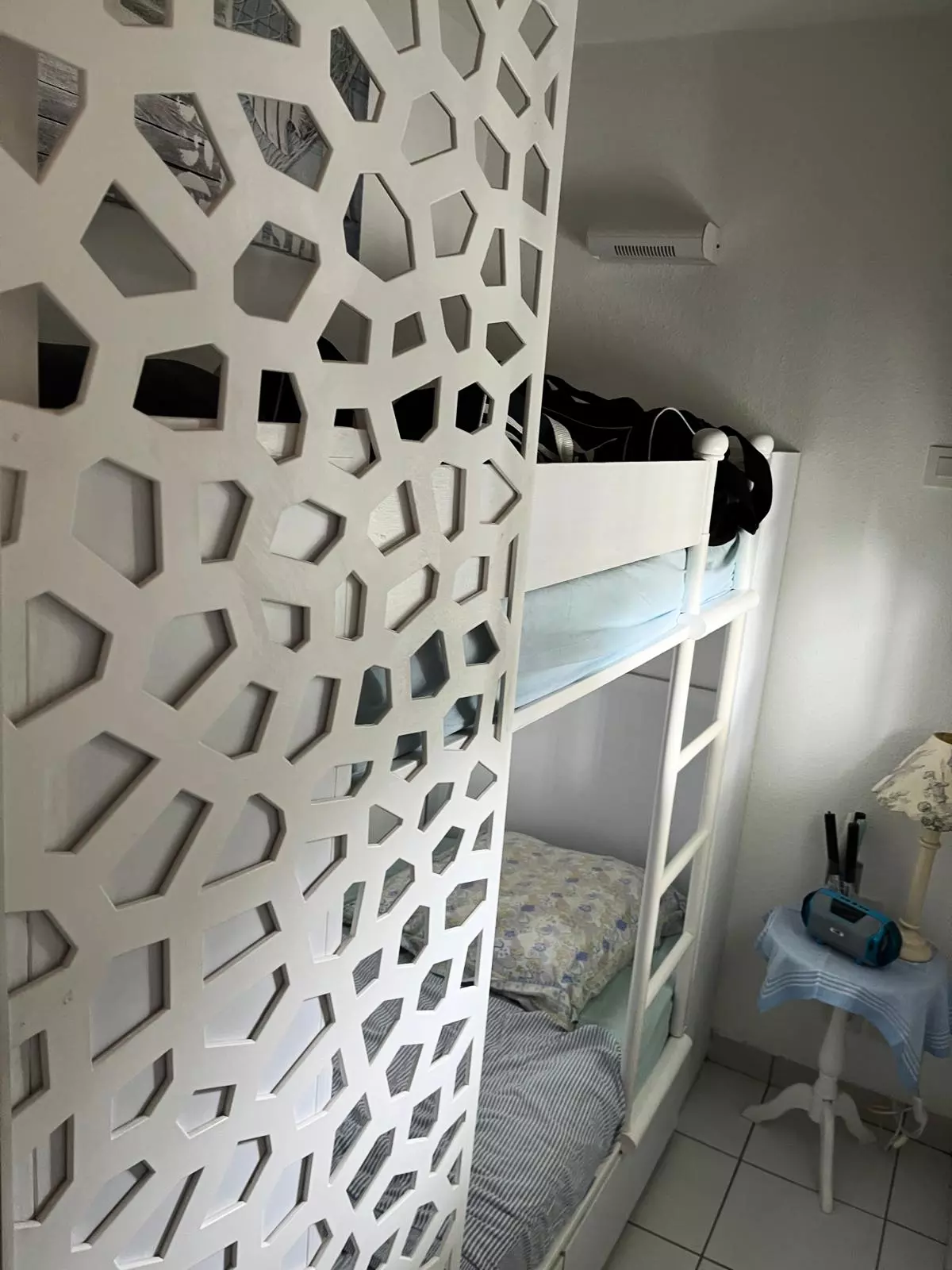 Les atouts de votre location : Situé au 2? étage, ce logement séduit par sa vue mer et sa belle exposition plein sud, idéales pour profiter d’une atmosphère agréable tout au long de la journée. Il dispose d’une terrasse couverte prolongée par un jardin orienté sud, sans vis-à-vis, aménagé avec table et chaises pour savourer les extérieurs en toute tranquillité. L’agencement fonctionnel comprend un coin cabine avec lits superposés et un espace de vie convivial avec cuisine américaine. Un bien accueillant, parfait pour un séjour au calme.
