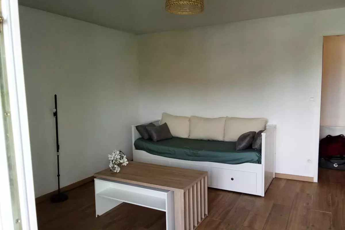 Cet appartement tout confort comprend une chambre spacieuse avec un lit double de 180x200, ainsi qu’un espace salon chaleureux équipé d’un canapé convertible de 160x200, parfait pour accueillir des amis ou la famille. La salle de bain fonctionnelle et la cuisine entièrement équipée vous garantiront un séjour agréable et sans souci.