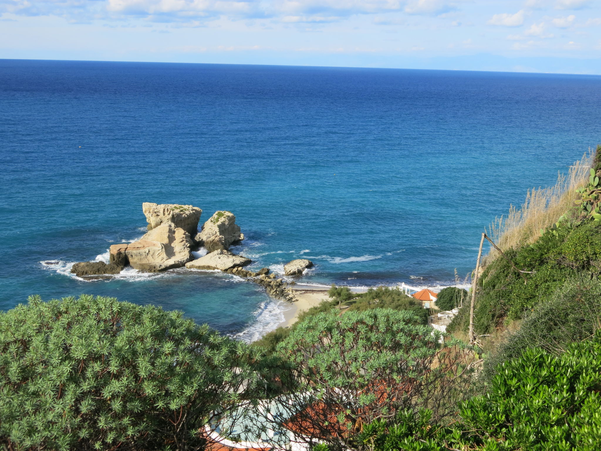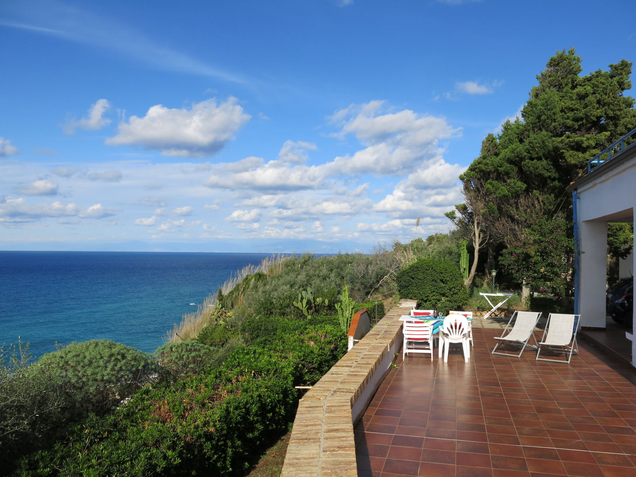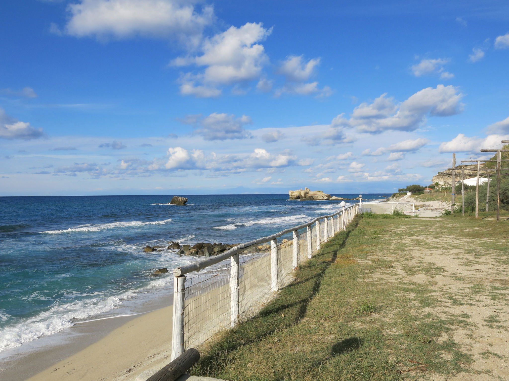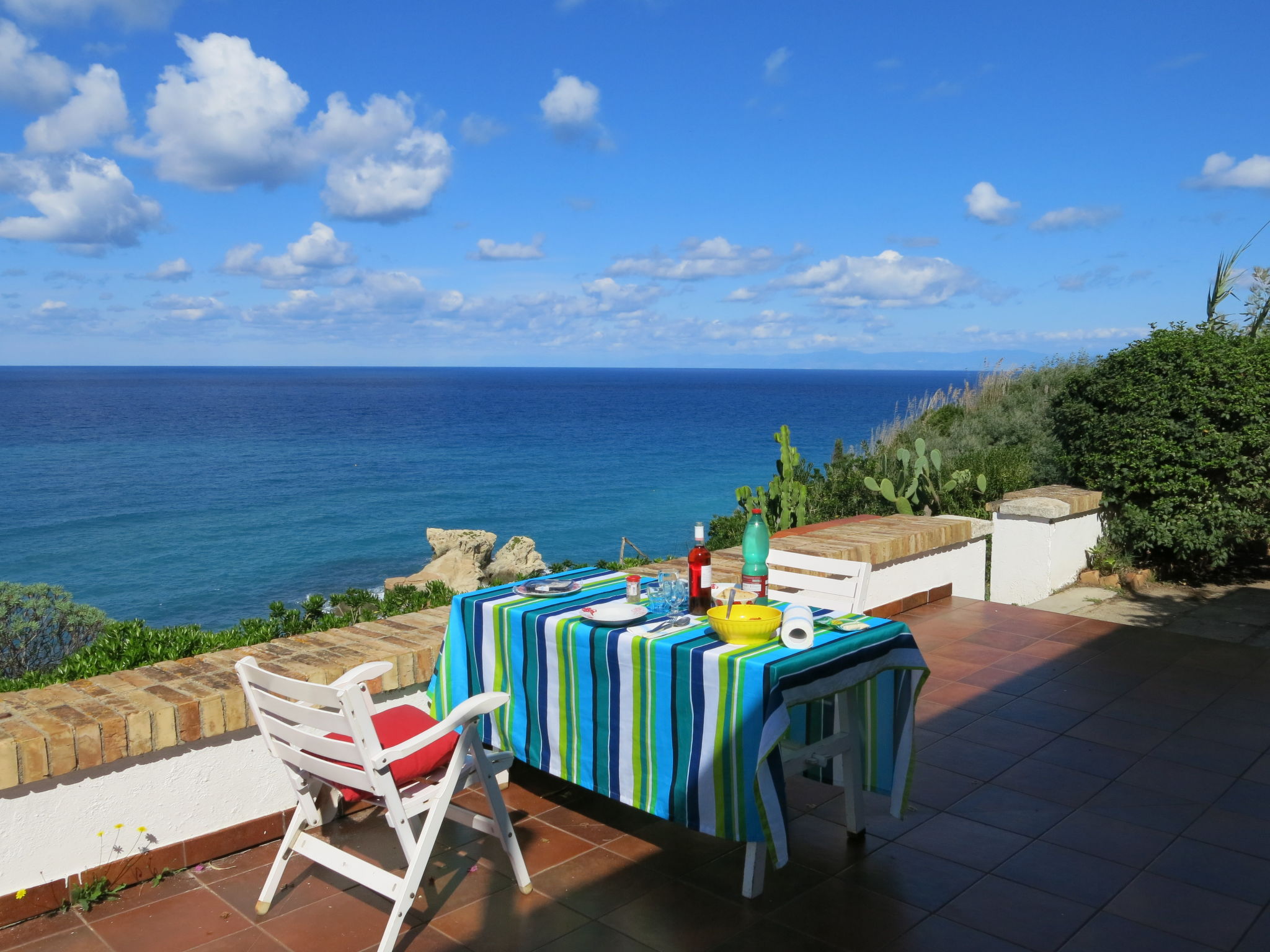 Maison à 2 apts "Sulla Scogliera", 40 m au dessus du niveau de la mer, environnée par les arbres et champs. Dans le quartier de Riaci, à 2.5 km du centre de Tropea, à 10 km du centre de Capo Vaticano, à 30 km du centre de Vibo Valenzia, situation surélevée sur un versant, à 700 m de la mer, accès direct à la plage. En commun: jardin sur plusieurs niveaux, 3 ha avec arbres, jardin naturel, verger. Accès en voiture par un chemin de 100 m de long (chemin non goudronné). Supermarché 2.5 km, restaurant, bar 700 m, arrêt de bus 1 km, gare ferroviaire "Ricadi" 1 km, ferry "Tropea - Isole Eoliche" 2.5 km, plage de sable 700 m. Veuillez noter: le propriétaire habite sur le même terrain. Le propriétaire habite dans la même maison. Voie ferrée 50 m de la maison.