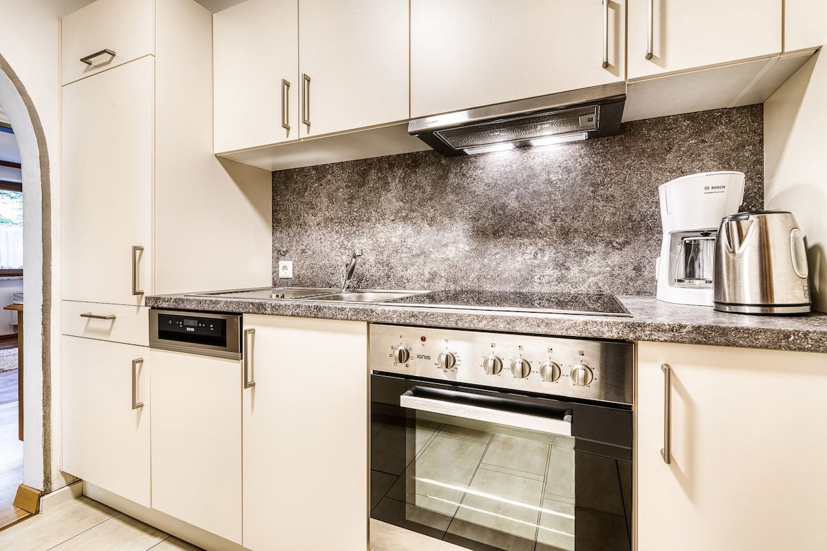 La cuisine, est équipée avec réfrigérateur, four, lave-vaisselle, vaisselle/couverts, ustensiles/cuisine, cafetière, grille pain, bouilloire, cuisinière, equipement de cuisine.