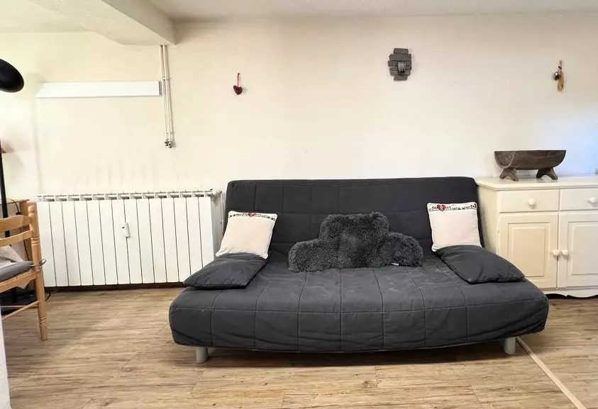 * Séjour : 2 canapés convertibles type clic clac en 140cm, T.V. HD, coin repas, parquet, accès à l'extérieur ;
