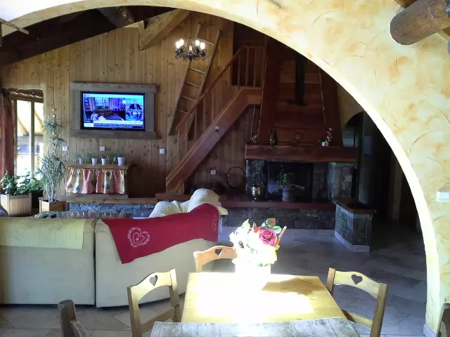 - Coin salon : télévision, cheminée décorative non utilisable et Wifi