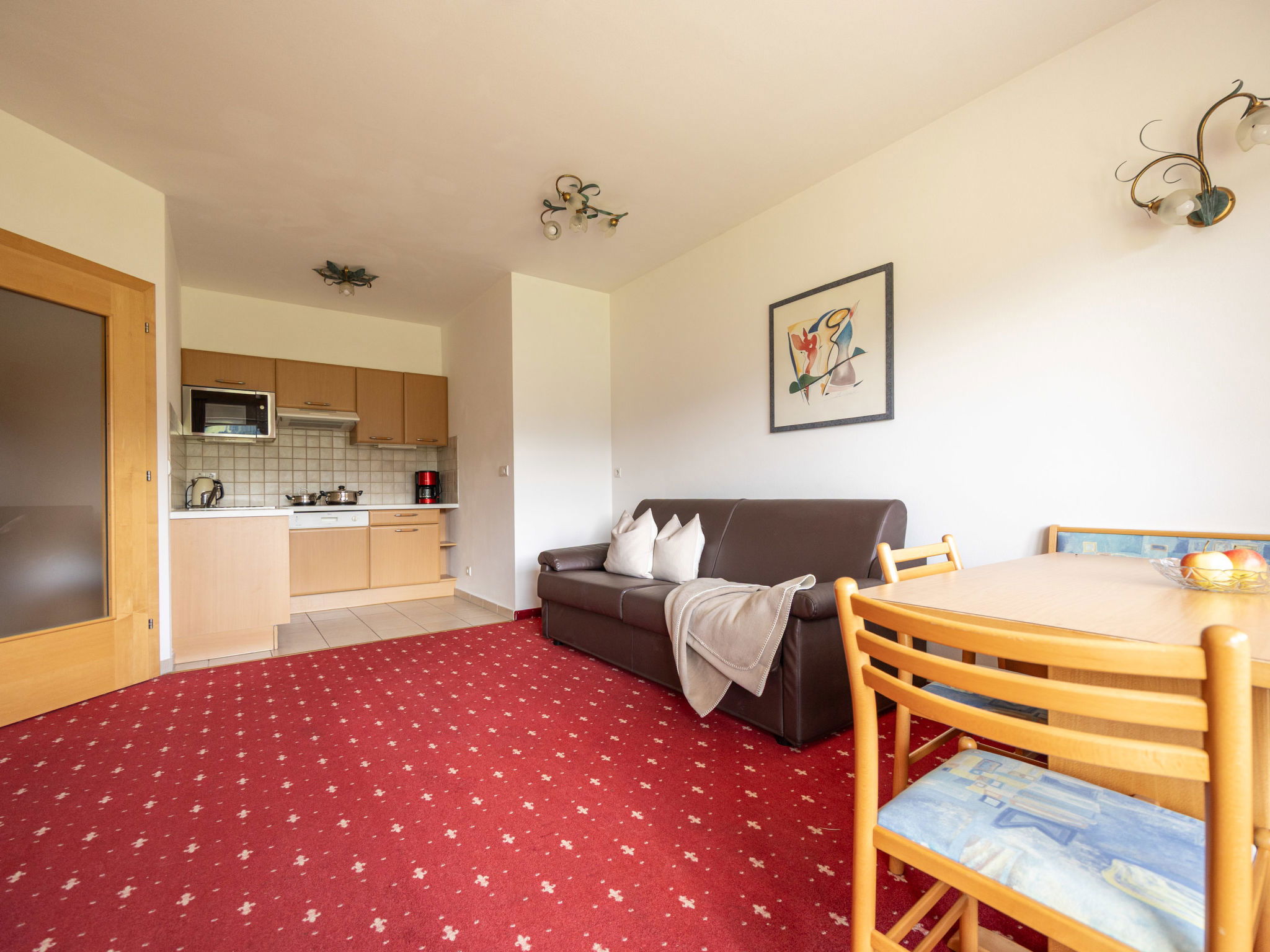 "Garden 102", Appartement de 2 pièces 41 m2, au rez-de-chaussée. Clair, aménagement fonctionnel et plaisant: séjour/chambre à coucher avec 1 divan-lit double, coin repas et TV (satellite). Sortie sur la terrasse. 1 chambre double avec TV (satellite). Petite cuisine ouverte (lave-vaisselle, 4 plaques vitrocéramiques, grille-pain, bouilloire électrique, micro-ondes, cafetière électrique). Douche/WC. Chauffage. Moquette. Terrasse, situation sud-est. Meubles de terrasse. Vue panoramique sur les montagnes et la vallée. A disposition: coffre-fort, chaise haute pour enfant, lit bébé (en sus). Internet (Connexion WIFI, gratuit). Veuillez noter: logement non-fumeur. Maximum 1 animal/ chien autorisé. Pas de frais supplémentaires obligatoires à régler sur place, sauf pour la taxe de séjour Linge de maison, serviette de bain, ménage final et coûts énergétiques inclus. IT021114B4YTADM49K