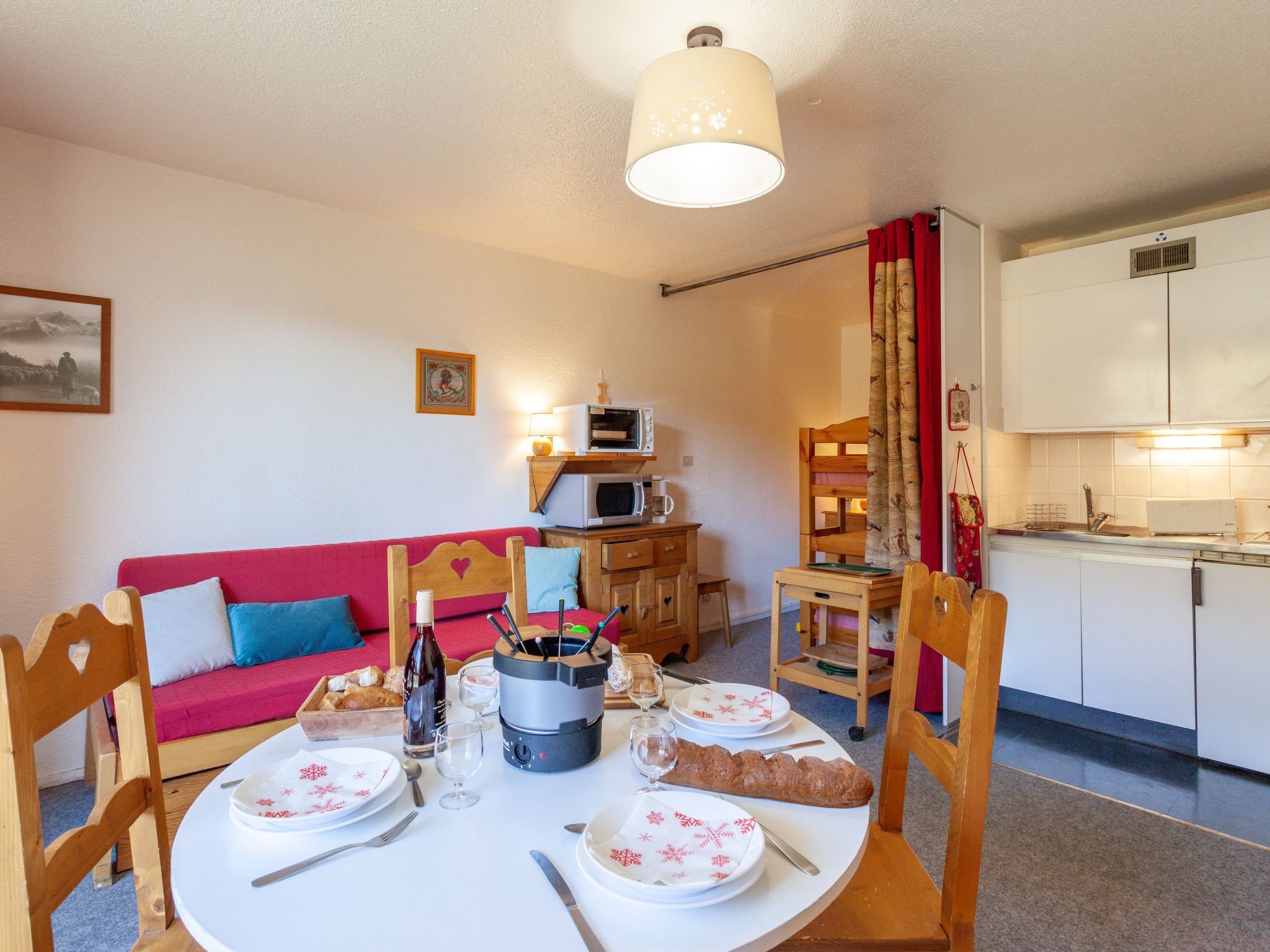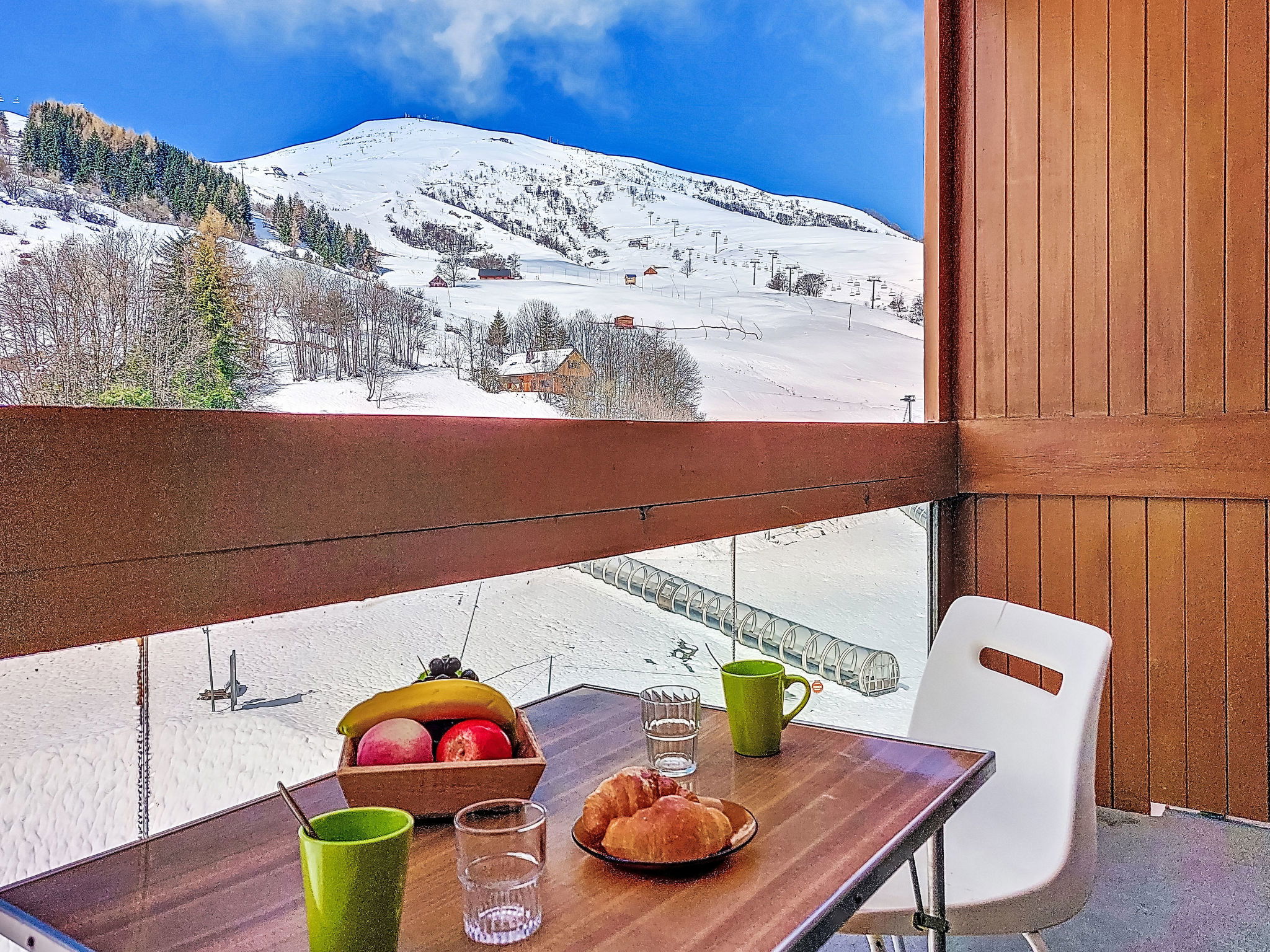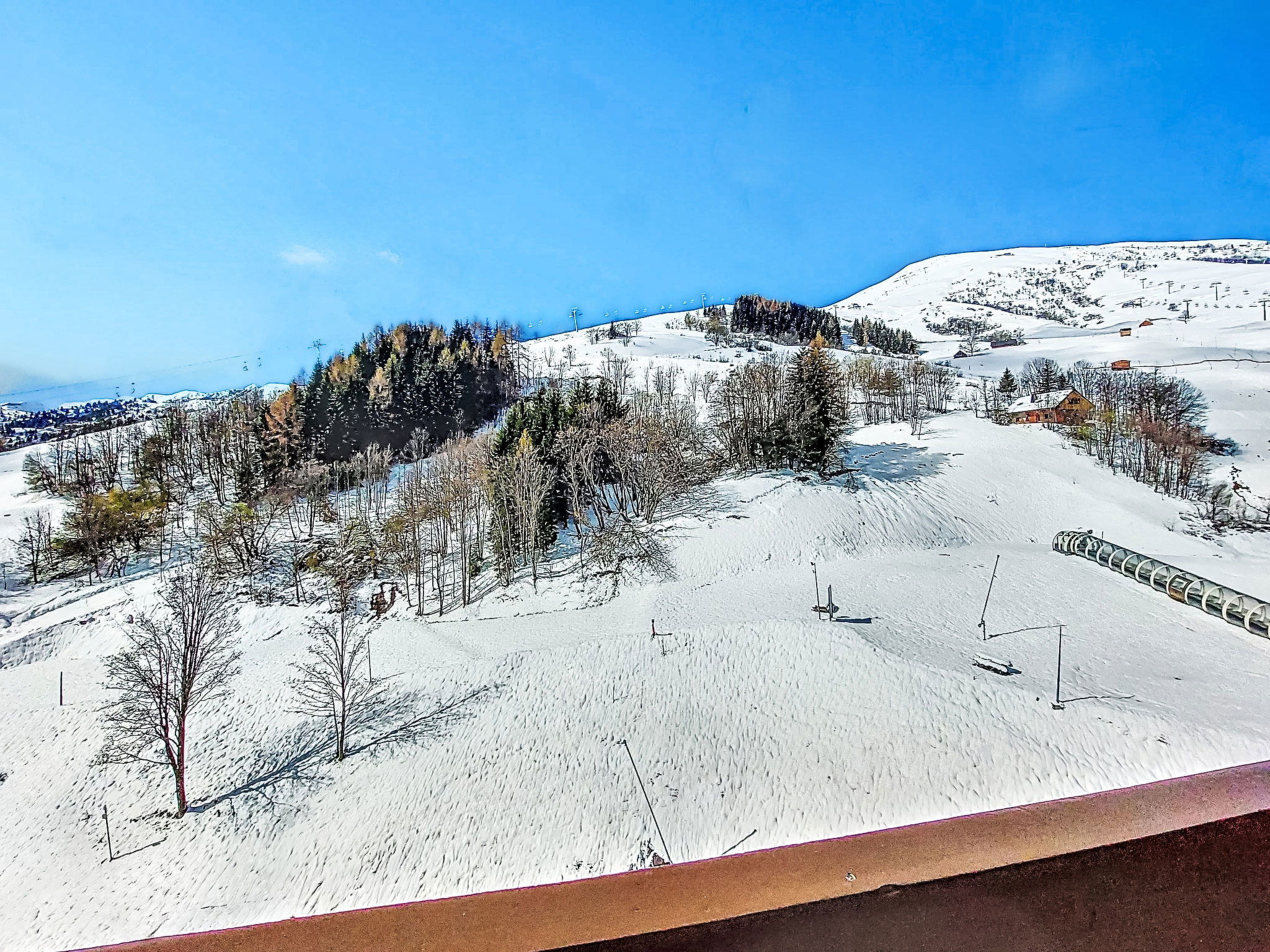 Studio 32 m2 au 11ème étage, situation sud. Aménagement simple: séjour/salle à manger avec 2 lits (80 cm, longueur 190 cm), TV (écran plat). Sortie sur le balcon, orientée sud. Alcôve avec rideau, sans fenêtre avec 1 x 2 lits superposés (80 cm, longueur 190 cm). Coin cuisine (2 plaques de cuisson, four, grille-pain, micro-ondes, cafetière électrique). Salle de bains, WC séparé. Chauffage électrique. Moquette. Balcon 4 m2, situation sud. Mobilier de balcon, chaises longues (2). Vue sur les pistes de ski. A disposition: chaise haute pour enfant. Internet (Connexion WIFI, en sus). Veuillez noter: maximum 1 animal/ chien autorisé. Détecteur de fumée. Au lieu d'une chambre fermée, des espaces de couchage sont situés dans une zone ouverte (galerie, alcôve...). Annonce d'un particulier (art 155, IV du CGI).