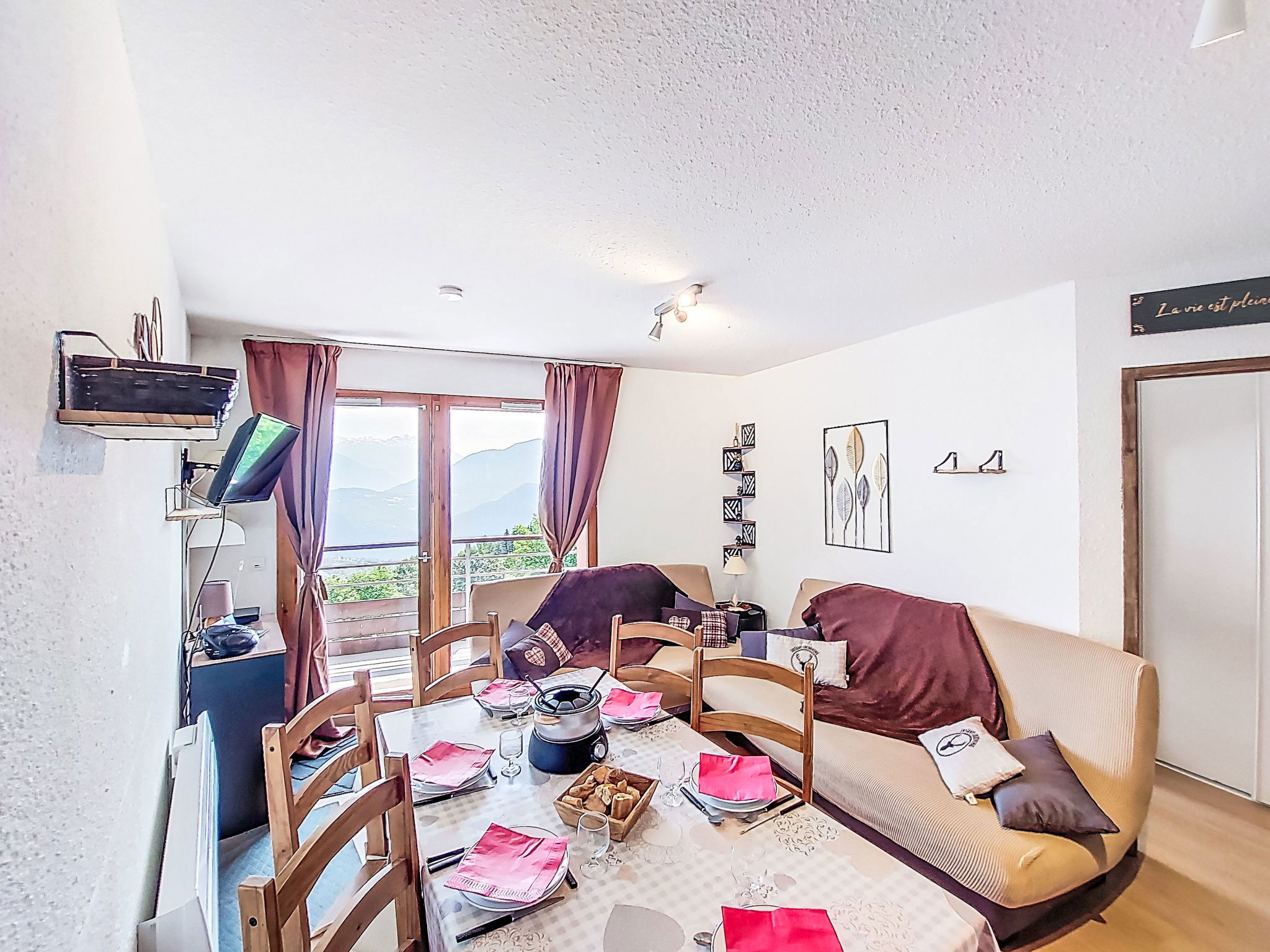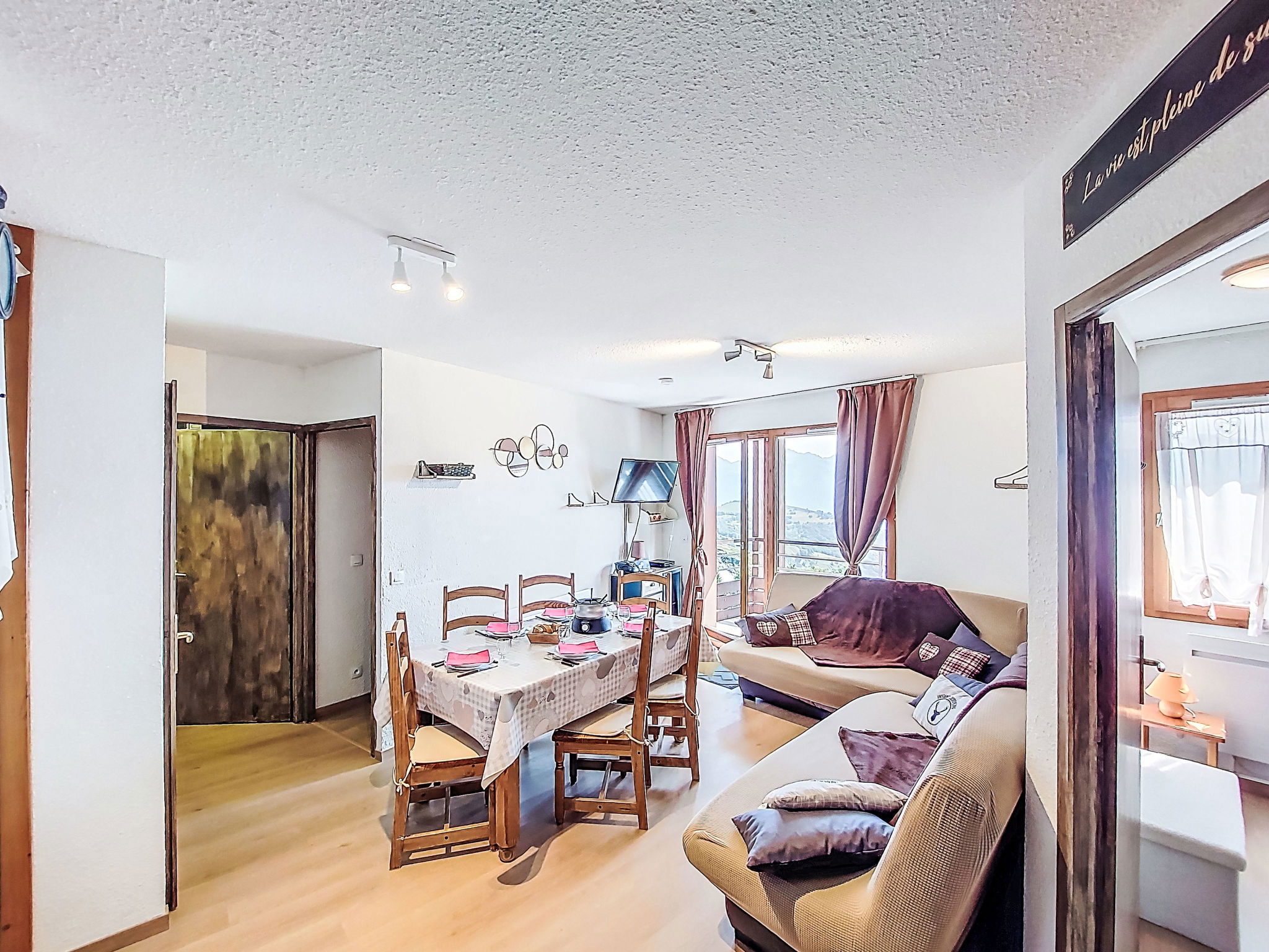"Bâtiment A", Appartement de 3 pièces 40 m2 au 2ème étage, situation nord. Aménagement plaisant: séjour/salle à manger avec 2 divans-lits (120 cm, longueur 190 cm), TV (écran plat), chaîne stéréo et DVD. Sortie sur le balcon, orientée nord. 1 chambre orientée nord avec 1 grand-lit (140 cm, longueur 190 cm). 1 chambre orientée nord avec 1 x 2 lits superposés (90 cm, longueur 190 cm). Coin cuisine (four, lave-vaisselle, 4 plaques vitrocéramiques, grille-pain, bouilloire électrique, congélateur, cafetière électrique, Capsules pour machine à café (SENSEO) (NON INCLUSES), appareil à raclette, combiné micro-ondes) avec bar. Douche, WC séparé. Chauffage électrique. Sol en parquet. Balcon 4 m2, situation nord. Mobilier de balcon. Belle vue sur la vallée. A disposition: sèche-cheveux. Internet (Connexion WIFI, en sus). Veuillez noter: logement non-fumeur. Maximum 1 animal/ chien autorisé. Détecteur de fumée. Annonce d'un particulier (art 155, IV du CGI).