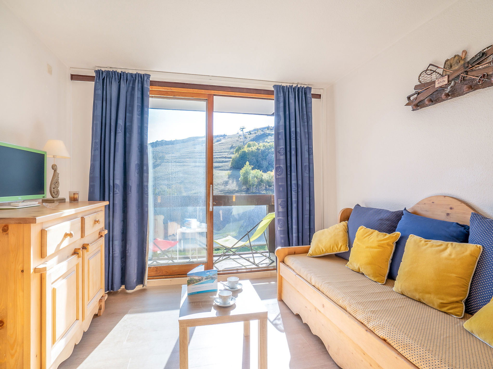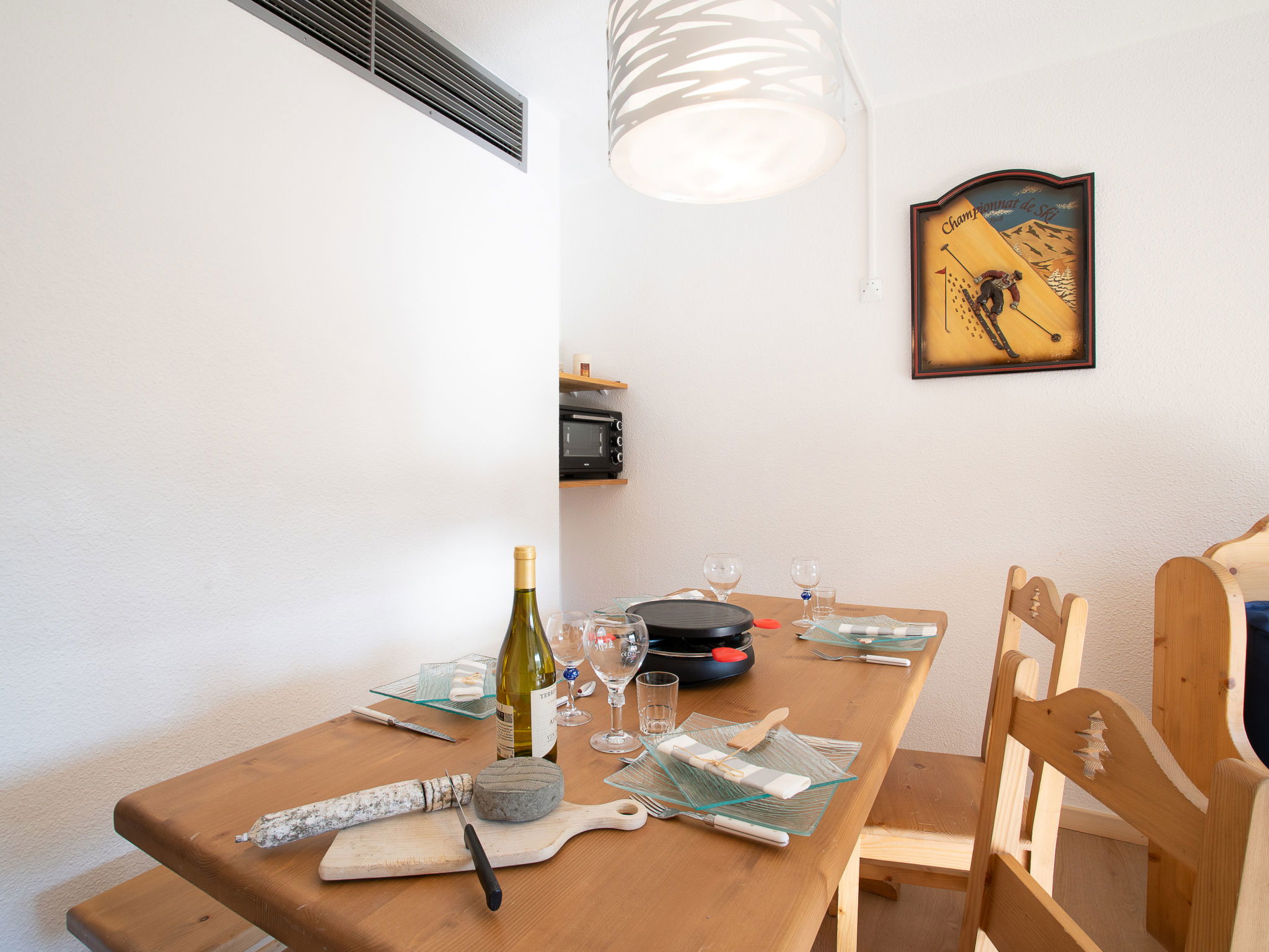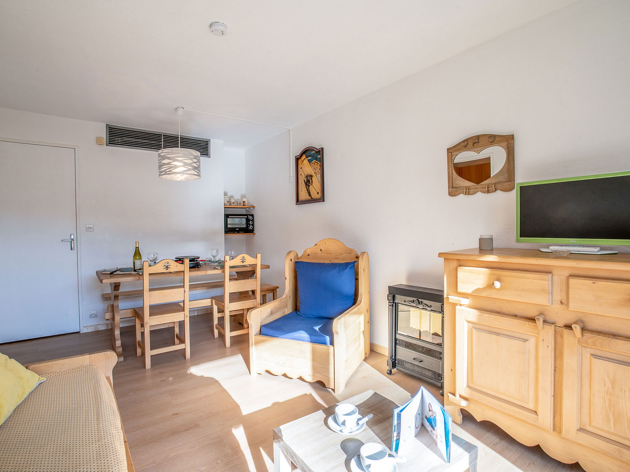 Studio 28 m2 au 14ème étage, situation sud. Aménagement confortable et agréable: séjour/salle à manger avec 1 lit gigogne (2 pers. 2 x 80 cm, longueur 190 cm), TV (écran plat). Sortie sur le balcon, orientée sud. Alcôve avec rideau avec 1 lit double (140 cm, longueur 190 cm). Coin cuisine (2 plaques de cuisson, mini-four, lave-vaisselle, grille-pain, bouilloire électrique, micro-ondes, congélateur, cafetière électrique, Capsules pour machine à café (SENSEO), appareil à raclette). Salle de bains, WC séparé, double vasque. Chauffage. Sol en parquet. Balcon 4 m2, situation sud. Chaises longues (2). Vue sur les pistes de ski. A disposition: fer à repasser, sèche-cheveux. Internet (Connexion WIFI, en sus). Veuillez noter: logement non-fumeur. Maximum 1 animal/ chien autorisé. Détecteur de fumée. Au lieu d'une chambre fermée, des espaces de couchage sont situés dans une zone ouverte (galerie, alcôve...). Annonce d'un particulier (art 155, IV du CGI).