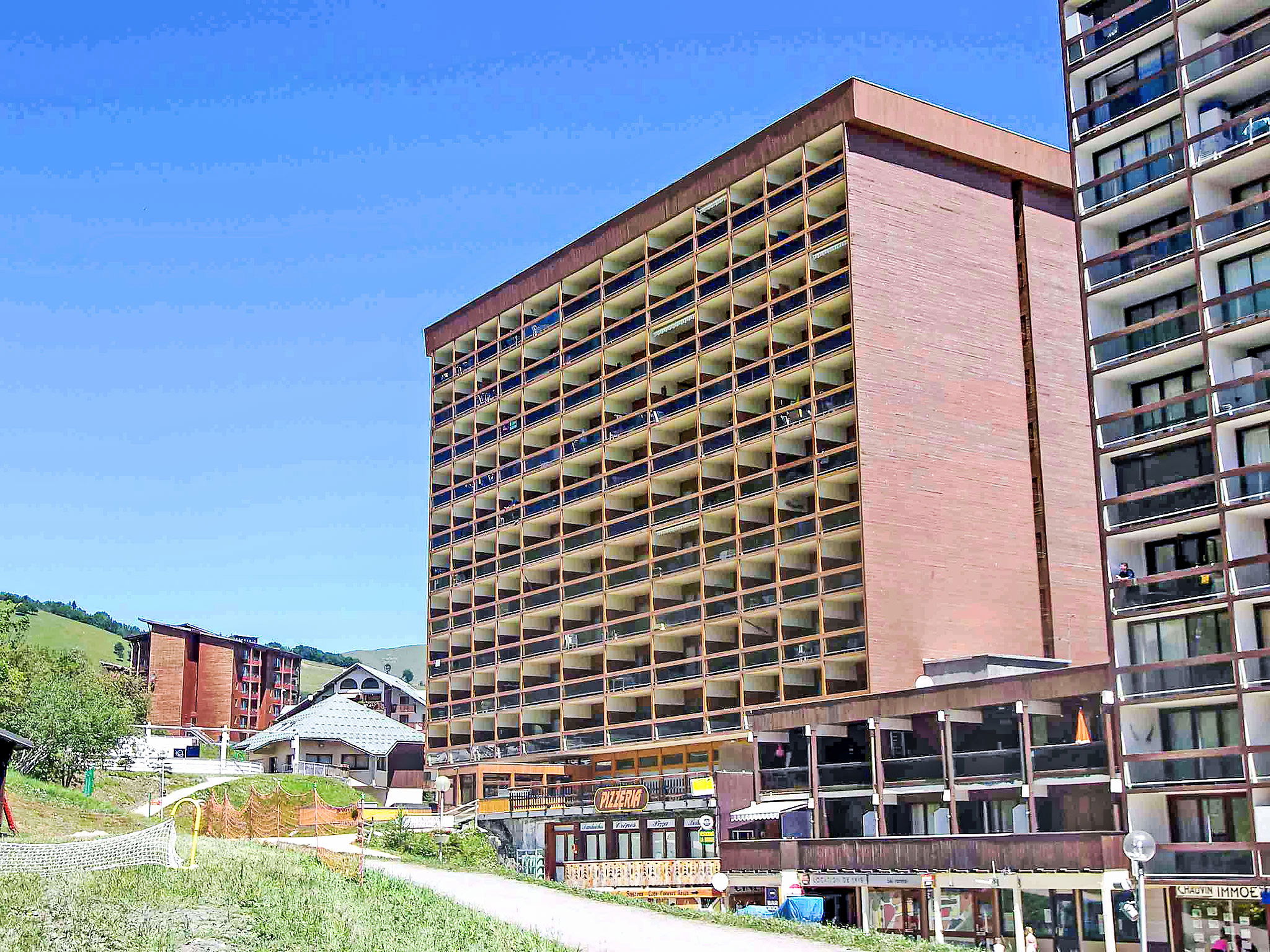Immeuble "Cosmos", de 10 étages. Dans le haut de la station de Corbier, à 50 m du centre, situation ensoleillée, à 50 m du domaine skiable. En commun: piscine chauffée (25 x 12 m, profondeur 90 - 200 cm, disponibilité saisonnière: 13.Dec. - 10.Avr. et 27.Jun. - 28.Aou. horaires d'ouverture de la piscine: 10:00-19:30). Infrastructures de la résidence: ascenseur, local pour les skis. Parking public 10 m. Magasins, magasin d'alimentation, restaurant, bar 50 m, arrêt de bus "Centre-Bagagerie" 100 m, gare ferroviaire "St Jean de Maurienne" 17 km, piscine 200 m. Tennis, téléski, télésiège, remontées mécaniques 50 m. École de ski 300 m, jardin d'enfants (hiver) 500 m, piste de luge 300 m, jeux pour enfants 350 m. Veuillez noter: ski-bus gratuit. La piscine indiquée se trouve à 200 m de la résidence : il s'agit de la piscine municipale extérieur. Enfants de 3 à 5 ans, accès autorisé en fonction des conditions climatiques (en hiver). La piscine est comprise avec la location.