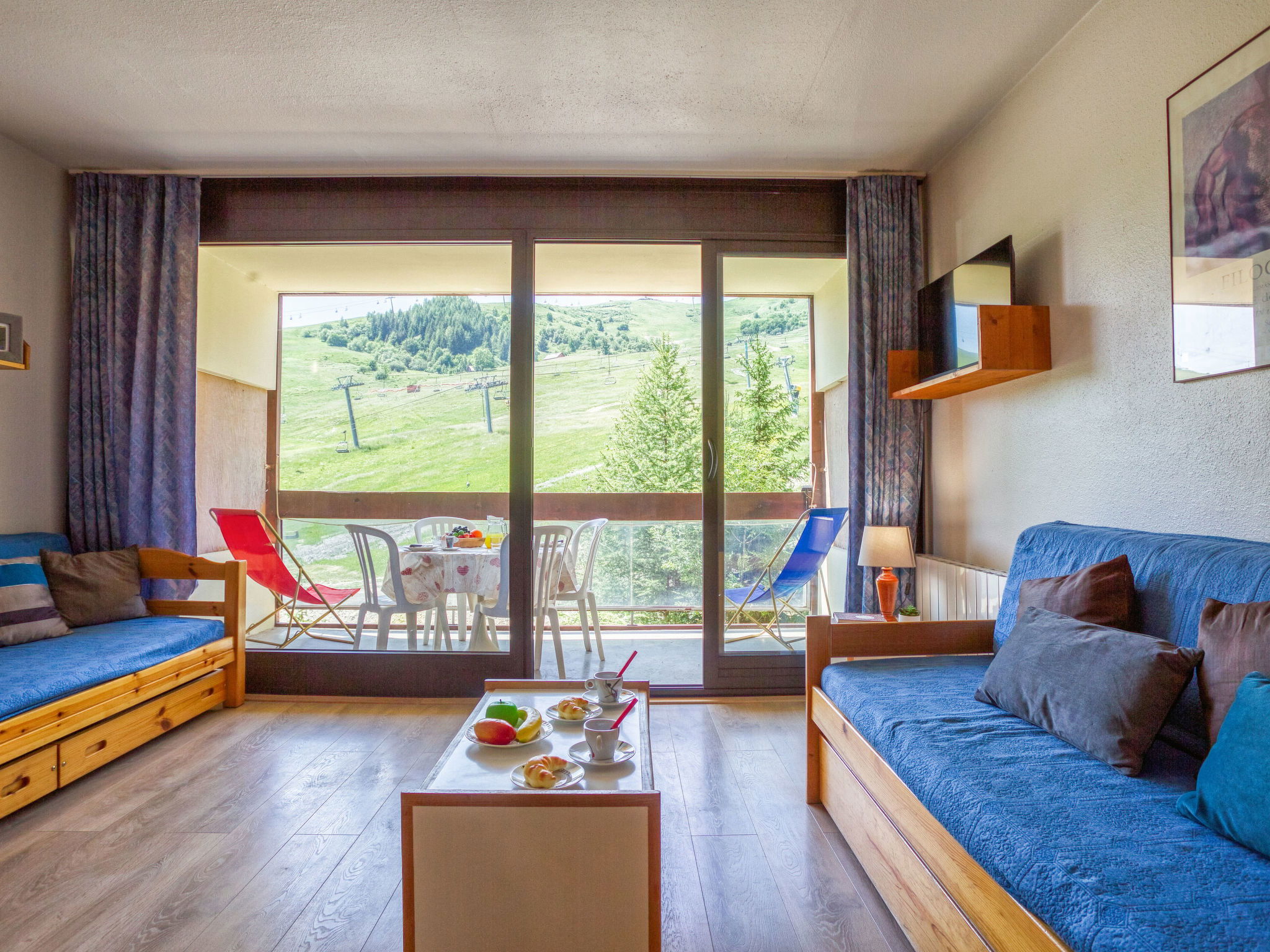 Studio 35 m2 au 1er étage, situation sud. Aménagement simple et fonctionnel: séjour/salle à manger avec 2 lits (80 cm, longueur 190 cm), TV (écran plat). Sortie sur le balcon, orientée sud. Alcôve avec rideau avec 1 grand-lit (140 cm, longueur 190 cm). Coin cuisine (2 plaques de cuisson, four, lave-vaisselle, grille-pain, micro-ondes, cafetière électrique, appareil à raclette). Salle de bains, WC séparé. Chauffage électrique. Sol en parquet. Balcon 8 m2, situation sud. Mobilier de balcon, chaises longues (2). Vue sur les montagnes et les pistes de ski. A disposition: sèche-cheveux. Internet (Connexion WIFI, en sus). Veuillez noter: logement non-fumeur. Maximum 1 animal/ chien autorisé. Détecteur de fumée. Au lieu d'une chambre fermée, des espaces de couchage sont situés dans une zone ouverte (galerie, alcôve...). Annonce d'un particulier (art 155, IV du CGI).