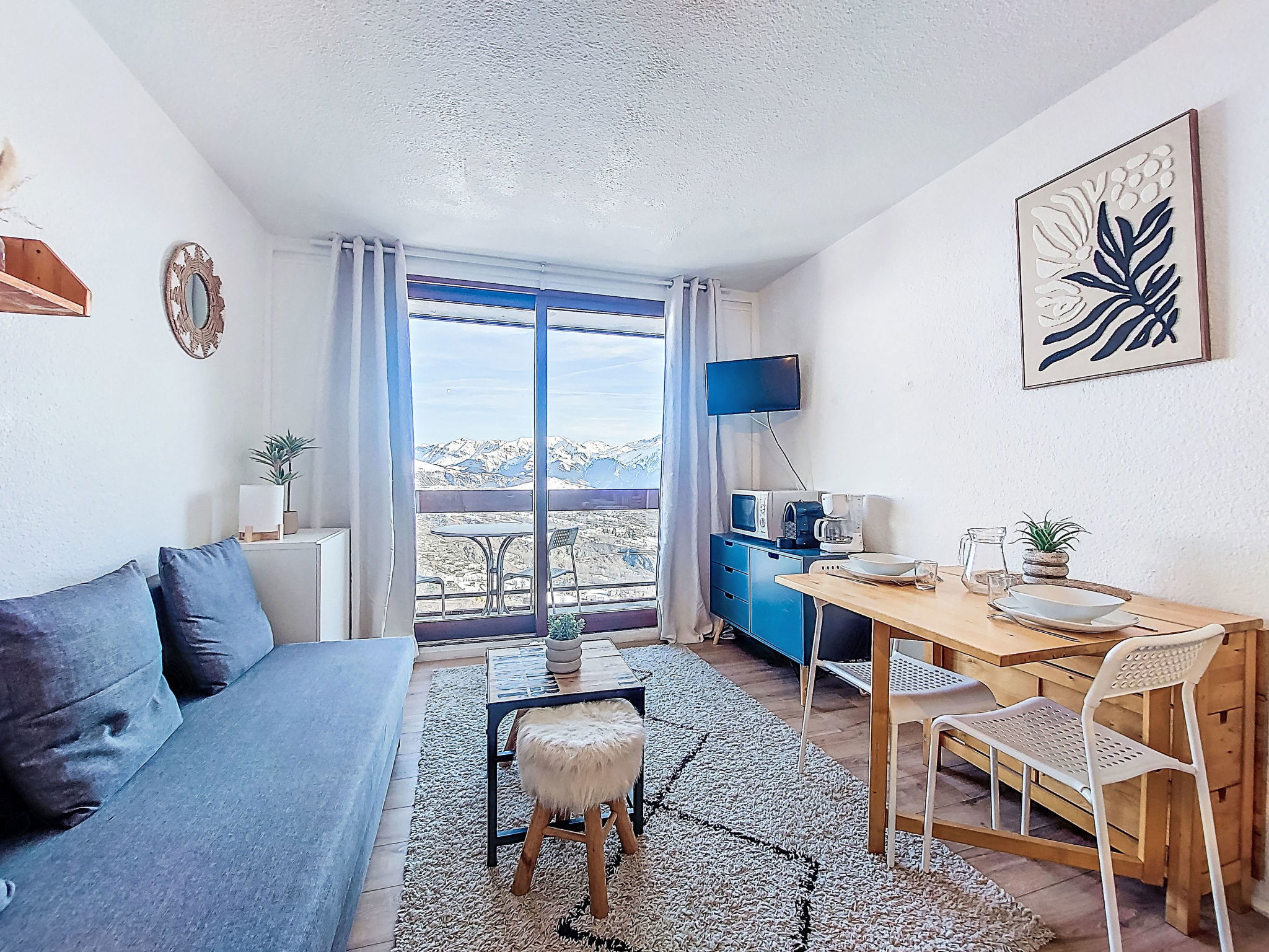Studio 22 m2 au 11ème étage, situation nord. Aménagement confortable et agréable: séjour/salle à manger avec 1 divan-lit double (130 cm, longueur 190 cm), 1 x 2 lits superposés (90 cm, longueur 190 cm), TV (écran plat), DVD. Sortie sur le balcon. Coin cuisine dans l'entrée (mini-four, 2 plaques vitrocéramiques, grille-pain, bouilloire électrique, micro-ondes, cafetière électrique, Capsules pour machine à café (Nespresso Magimix) (NON INCLUSES), appareil à raclette, service à fondue (fondue au fromage)). Douche/WC. Chauffage électrique. Sol en parquet. Balcon 4 m2, situation nord. Meubles de terrasse. Très belle vue sur les montagnes et la vallée. A disposition: fer à repasser, sèche-cheveux. Internet (Connexion WIFI, en sus). Veuillez noter: logement non-fumeur. Maximum 1 animal/ chien autorisé. TV seulement FR. Détecteur de fumée. Annonce d'un particulier (art 155, IV du CGI).
