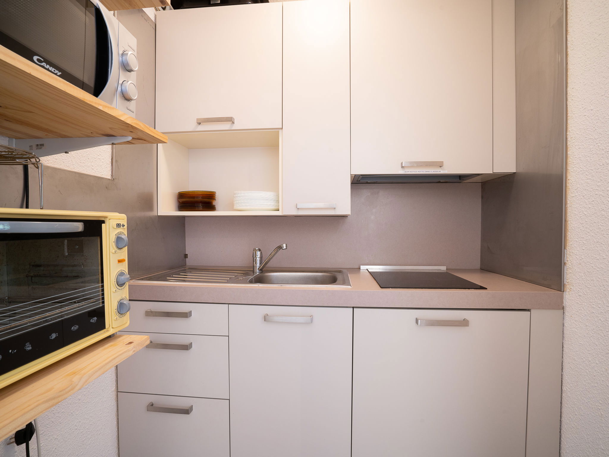 Studio 28 m2 au 2ème étage, situation sud. Aménagement simple et agréable: séjour/salle à manger avec 1 divan-lit double (140 cm, longueur 190 cm), TV (écran plat). Sortie sur le balcon, orientée sud. Alcôve avec 1 x 2 lits superposés (90 cm, longueur 190 cm). Coin cuisine (mini-four, 2 plaques vitrocéramiques, grille-pain, bouilloire électrique, micro-ondes, cafetière électrique, Capsules pour machine à café (krups dolce gusto) (NON INCLUSES), service à fondue (fondue au fromage)). Bain/WC. Chauffage électrique. Balcon 4 m2, situation sud. A disposition: lave-linge. Internet (Connexion WIFI, en sus). Veuillez noter: maximum 1 animal/ chien autorisé. Détecteur de fumée. Au lieu d'une chambre fermée, des espaces de couchage sont situés dans une zone ouverte (galerie, alcôve...). Annonce d'un particulier (art 155, IV du CGI).