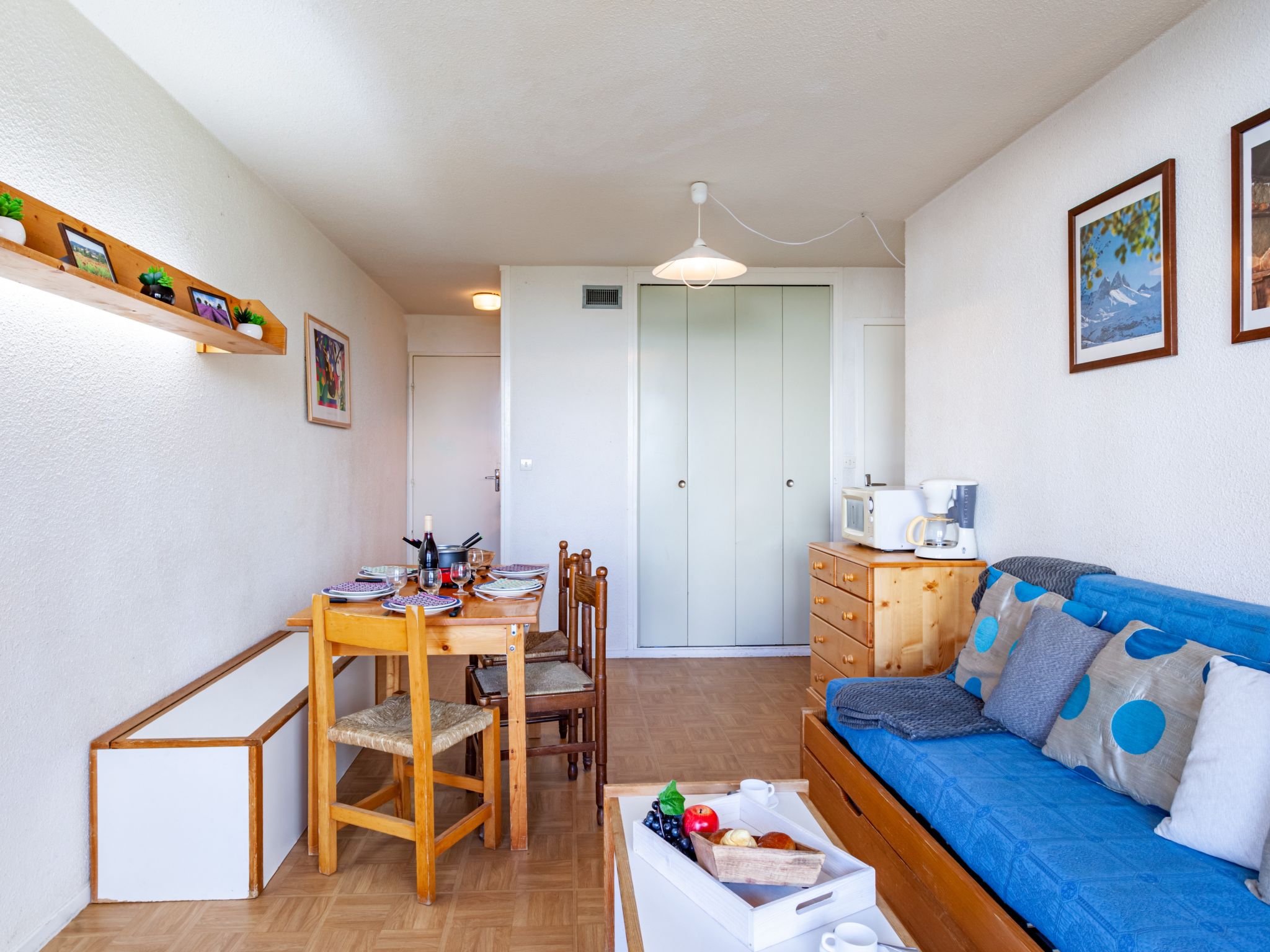 Appartement de 2 pièces 32 m2 au 18ème étage, situation nord. Aménagement simple: séjour/salle à manger avec 1 lit gigogne (2 x 80 cm, longueur 190 cm), TV (écran plat). Sortie orientée nord. 1 chambre avec 1 x 2 lits superposés (80 cm, longueur 190 cm), 1 couchage (80 cm, longueur 190 cm). Sortie sur le balcon, orientée ouest. Coin cuisine (4 plaques de cuisson, four, micro-ondes, cafetière électrique). Salle de bains, WC séparé. Chauffage électrique. 2 balcons 4 m2, situation nord et situation ouest. Vue sur la vallée. A disposition: sèche-cheveux. Internet (Connexion WIFI, en sus). Veuillez noter: maximum 1 animal/ chien autorisé. Détecteur de fumée. Annonce d'un particulier (art 155, IV du CGI).