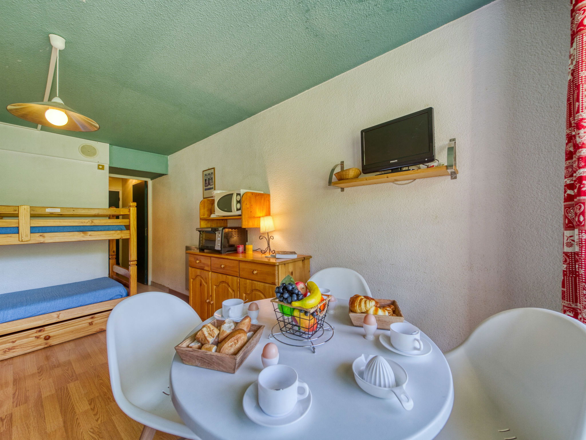 Studio 22 m2 au 9ème étage, situation sud. Aménagement simple: séjour/salle à manger avec 1 divan-lit double (130 cm, longueur 190 cm), 1 x 2 lits superposés (90 cm, longueur 190 cm), TV (écran plat). Sortie sur le balcon, orientée sud. Coin cuisine dans l'entrée (2 plaques de cuisson, four, micro-ondes, cafetière électrique). Bain/WC. Chauffage électrique. Sol en parquet. Balcon 4 m2, situation sud. Chaises longues (1). Vue sur les pistes de ski. A disposition: Internet (Connexion WIFI, en sus). Veuillez noter: maximum 1 animal/ chien autorisé. Détecteur de fumée. Annonce d'un particulier (art 155, IV du CGI).