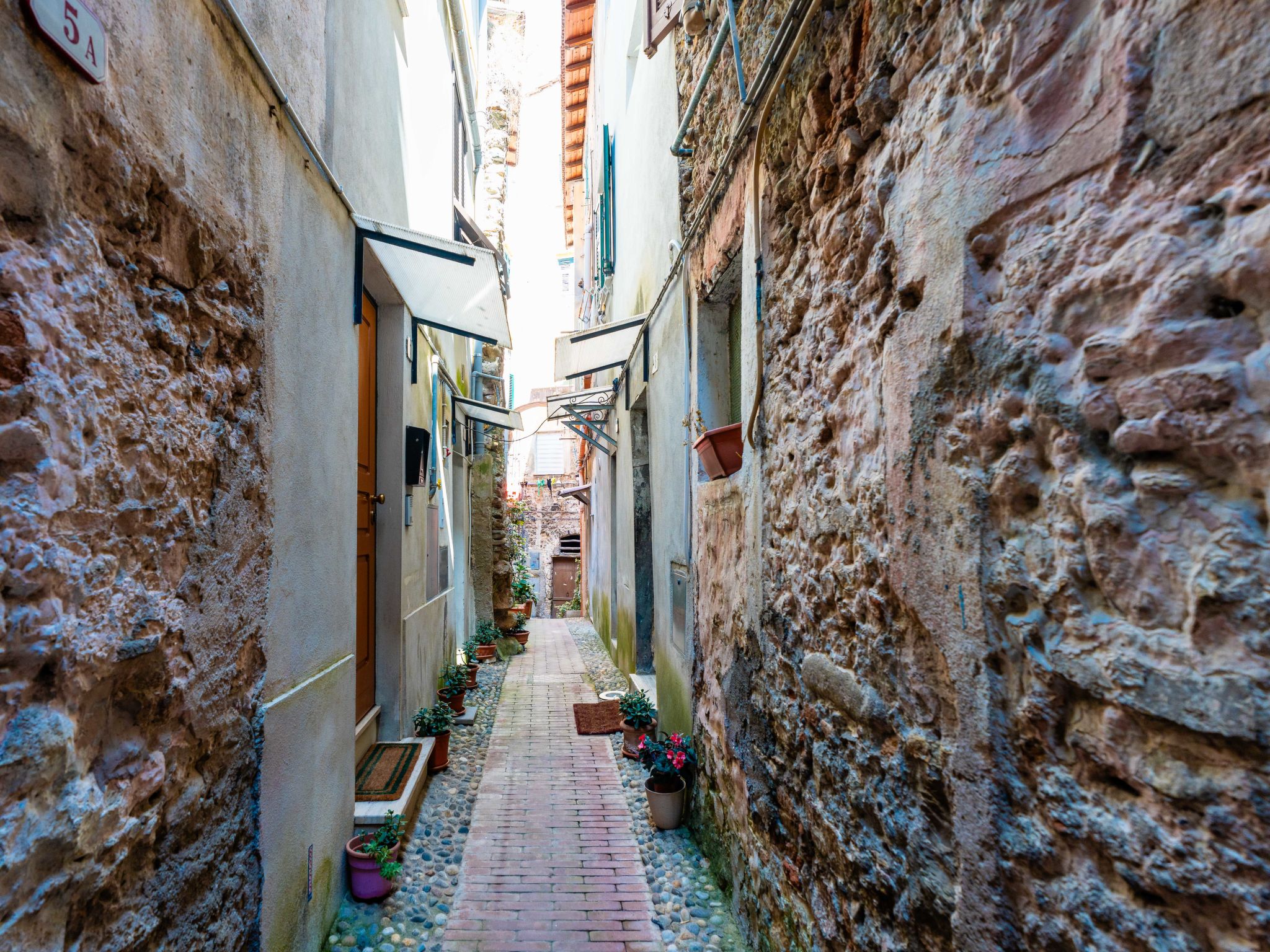 Maison mitoyenne historique. Au centre de Ventimiglia Alta, à 1.5 km du centre de Ventimiglia, à 6 km du centre de Menton France, à 6 km du centre de Bordighera, à 750 m de la mer. 100 m sentier jusqu'à la maison. Parking public 150 m possible dans la rue. Magasin d'alimentation 300 m, restaurant, bar 50 m, boulangerie 100 m, arrêt de bus "Su strada direzione Francia" 320 m, plage de sable "Calandre mare" 750 m.