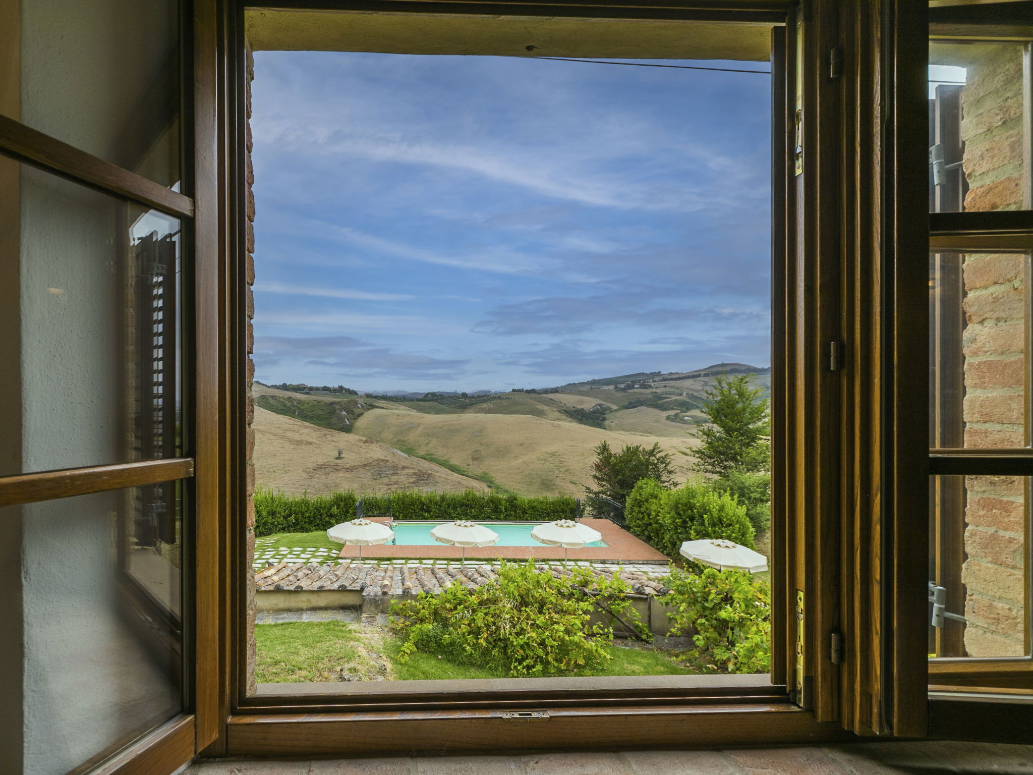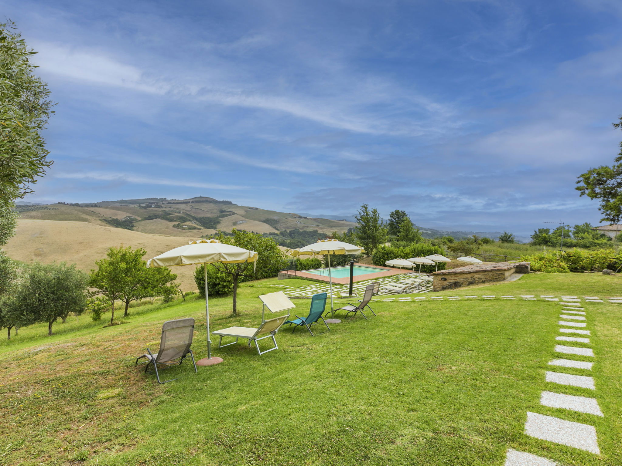 Résidence "Villa Caggio". 2 maisons dans la résidence. 5 appartements dans la résidence. À 3 km du centre de Volterra, en bordure de la localité, à 30 km du centre de San Gimignano, à 45 km de la mer. En commun: terrain 1'000 m2 (clôturé), arbres, champ, piscine (4 x 9 m, disponibilité saisonnière: 21.Mai. - 02.Oct.). Douche extérieure, entretien de la piscine par le propriétaire/jardinier. Infrastructures de la résidence: Connexion WIFI, location de bicyclettes. Place de parking sur le terrain. Magasins 2 km, supermarché 3 km, arrêt de bus 1 km, plage de sable "Marina di Cecina" 45 km, piscine couverte 4 km. Attractions à proximité: Pisa 70 km, Lucca 75 km, Siena 50 km, Firenze 80 km. Région de randonnées: Parco Berignone 12 km. Veuillez noter: le propriétaire habite sur le même terrain.